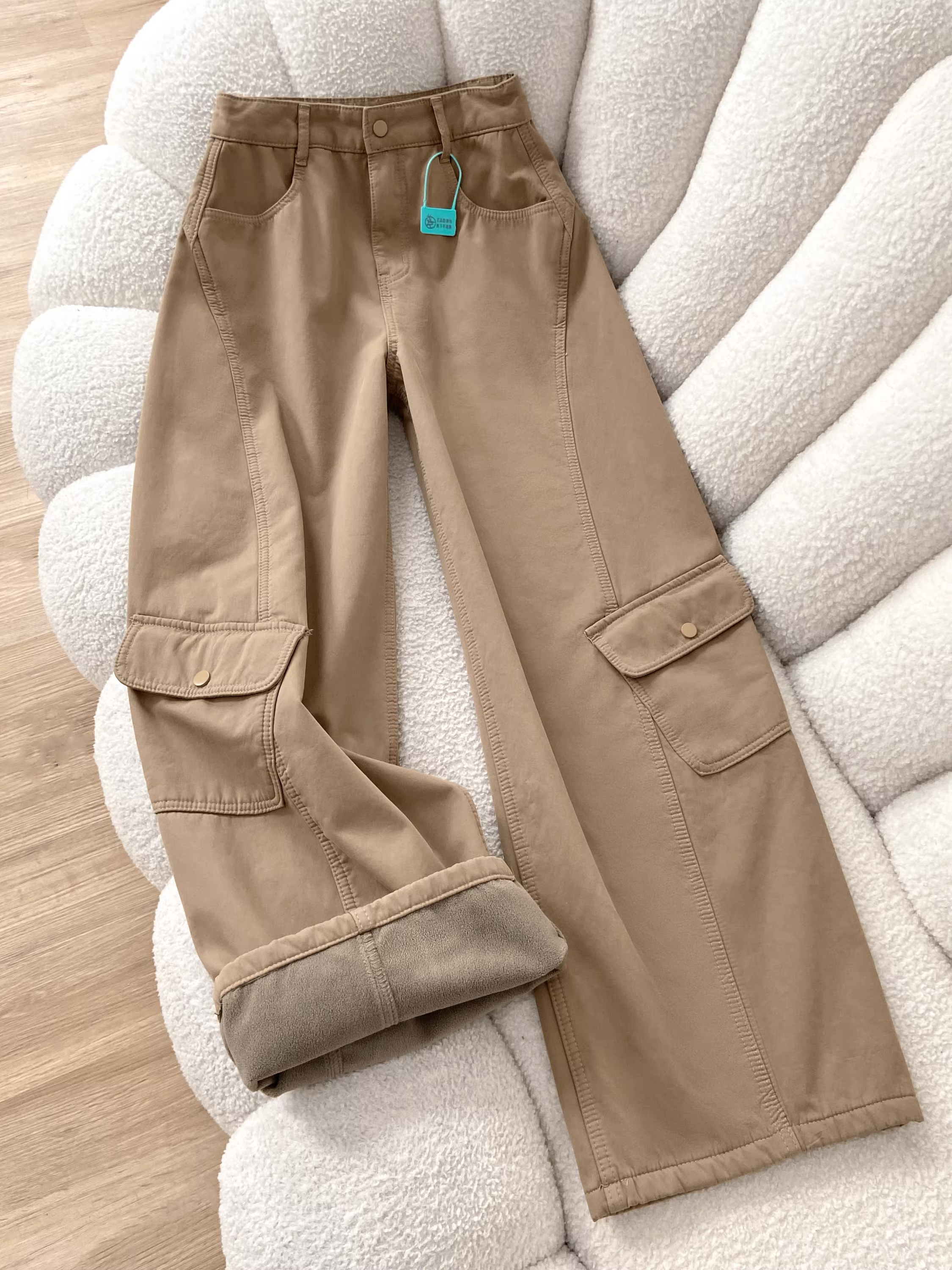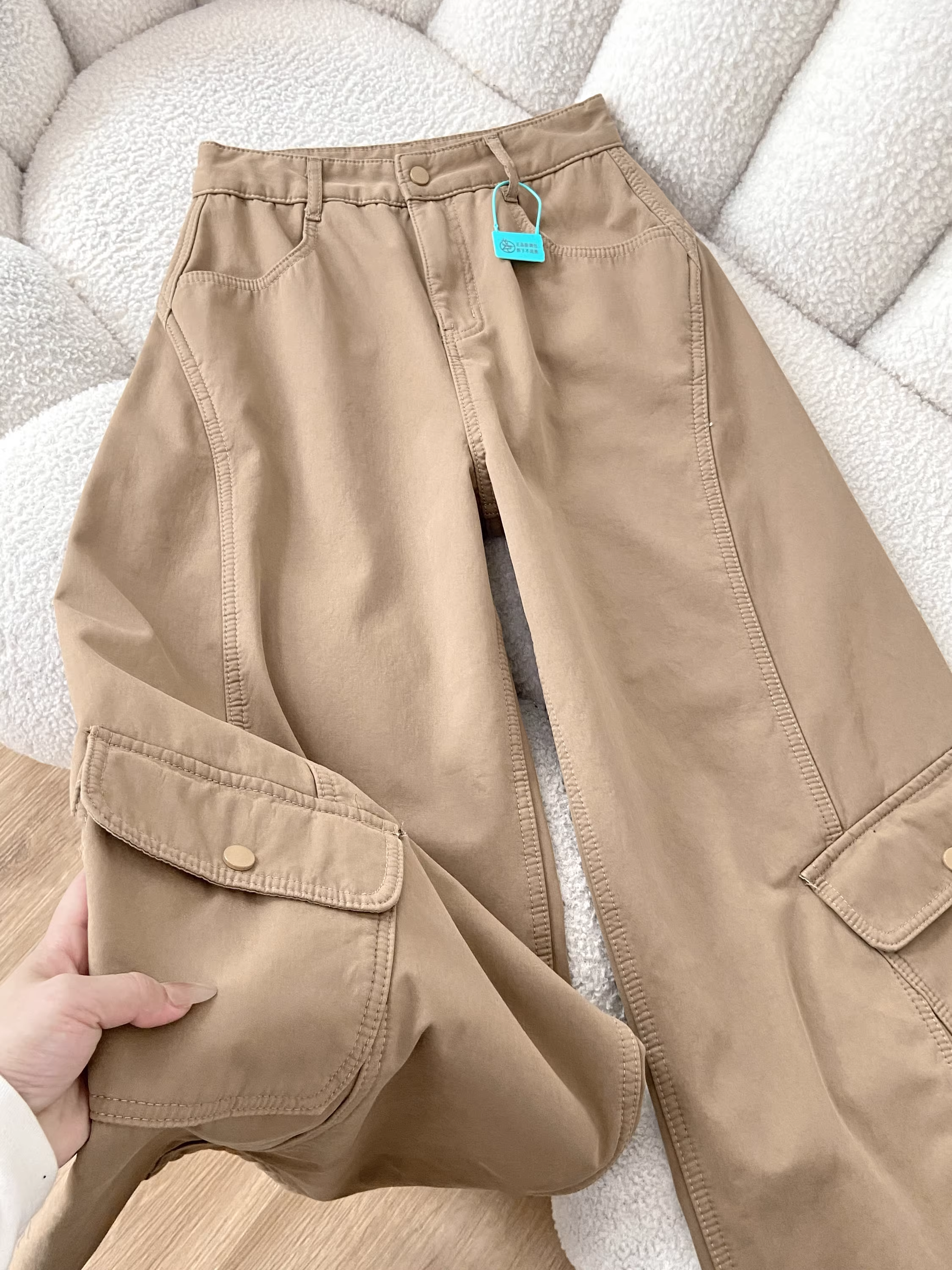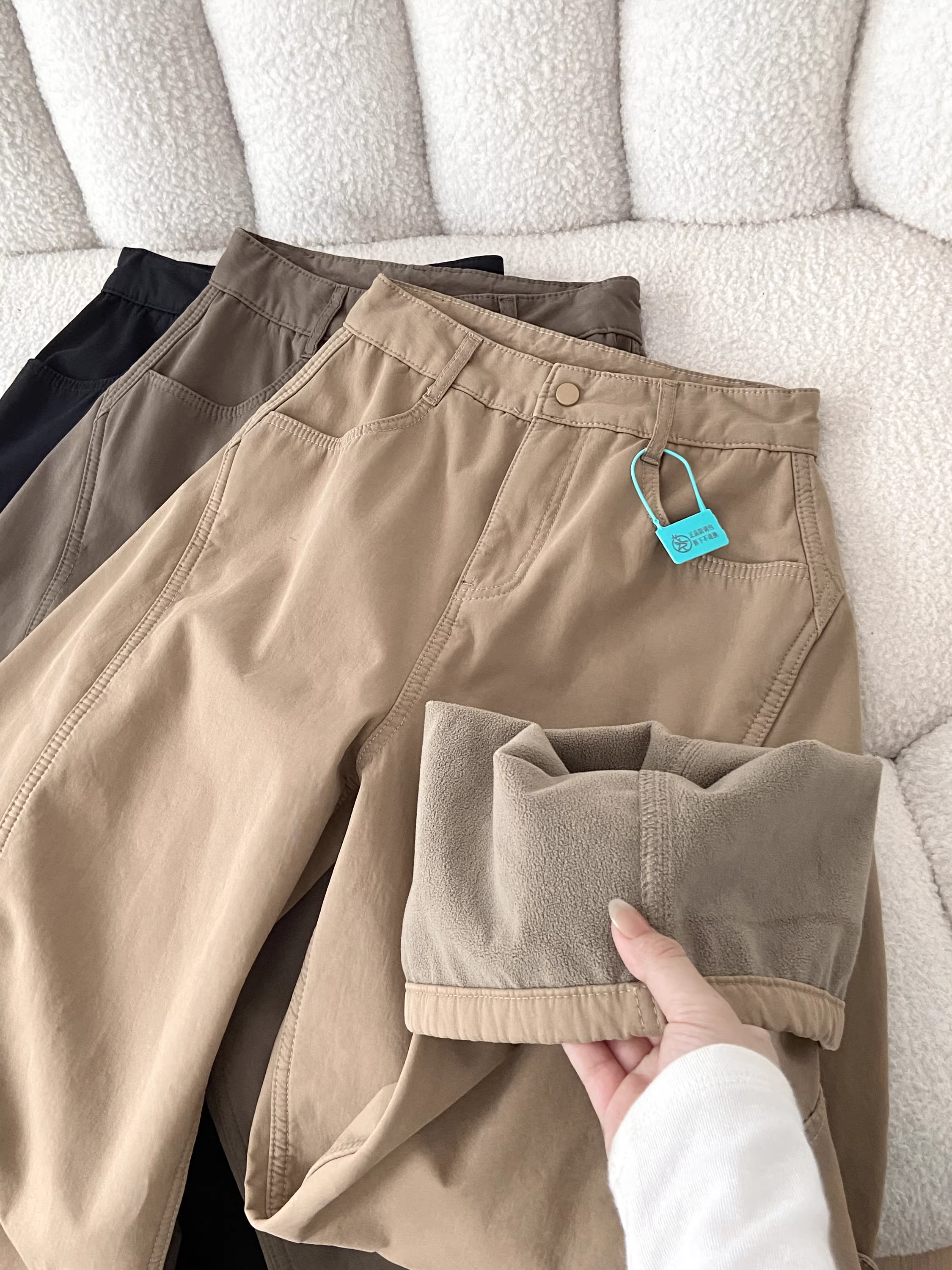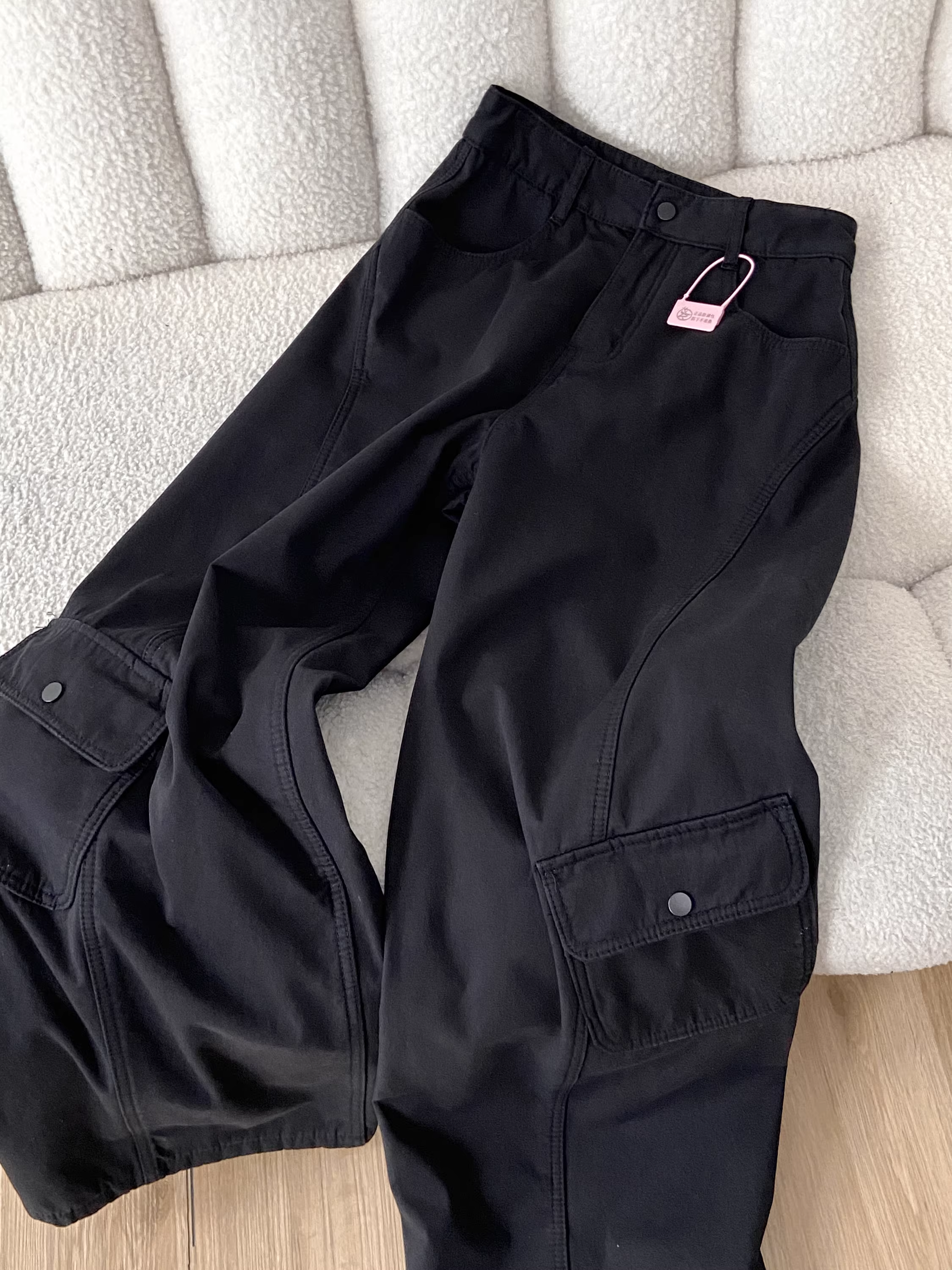 - Quần cargo ống rộng lót lông cừu đen La Chapelle dành cho nữ, kiểu dáng mới thu đông 2025, dáng thẳng phong cách Mỹ, size nhỏ nhắn