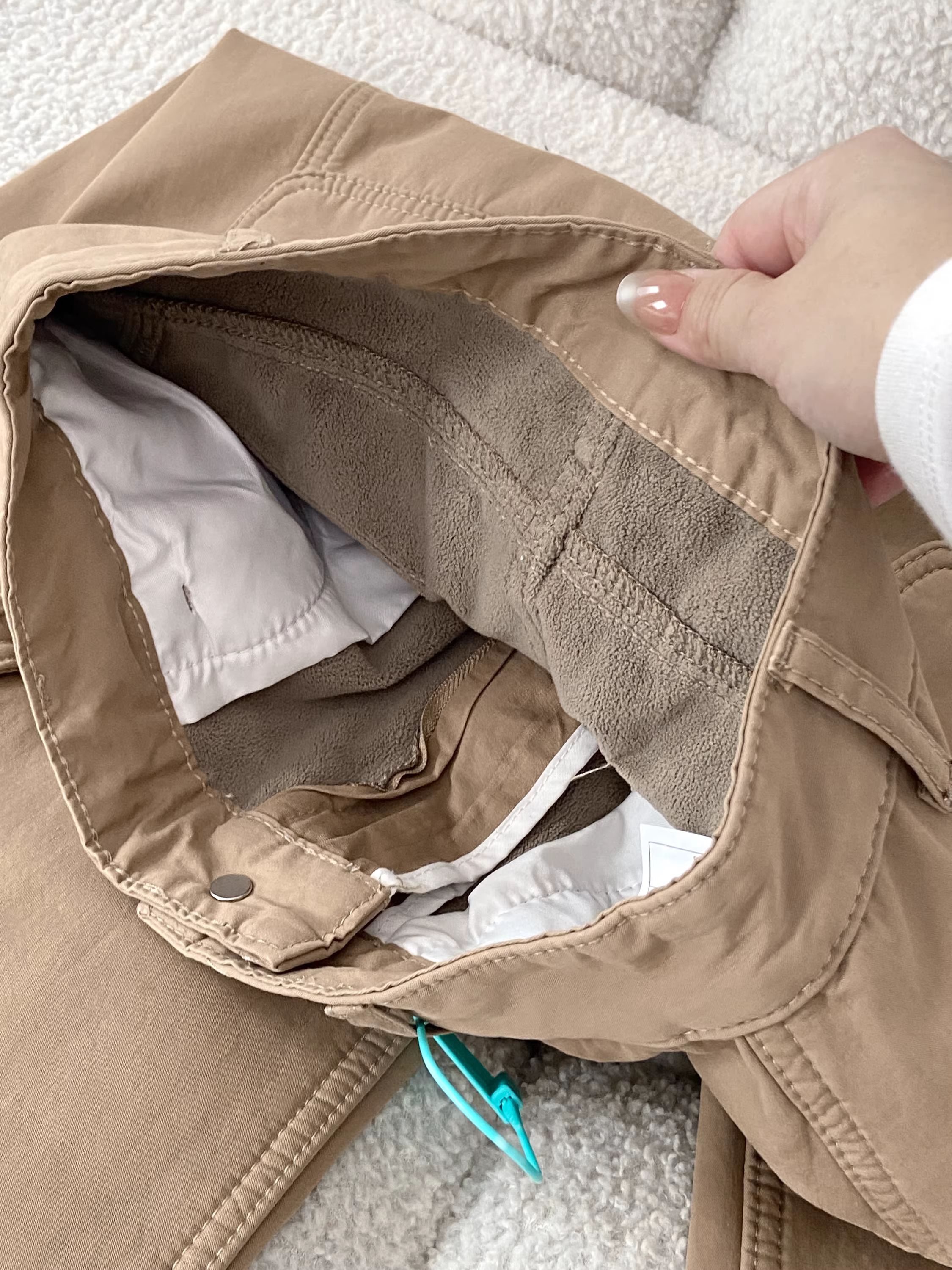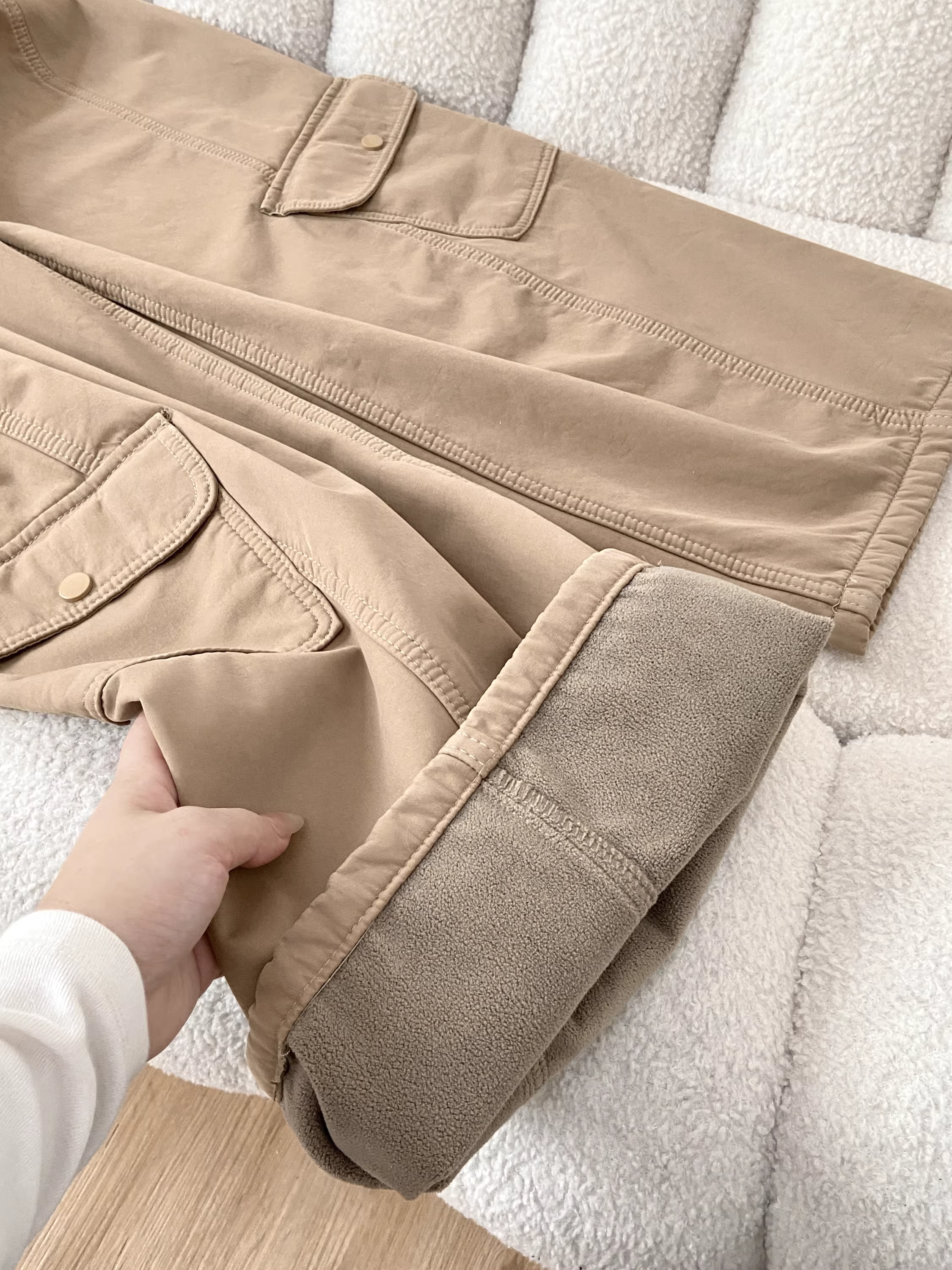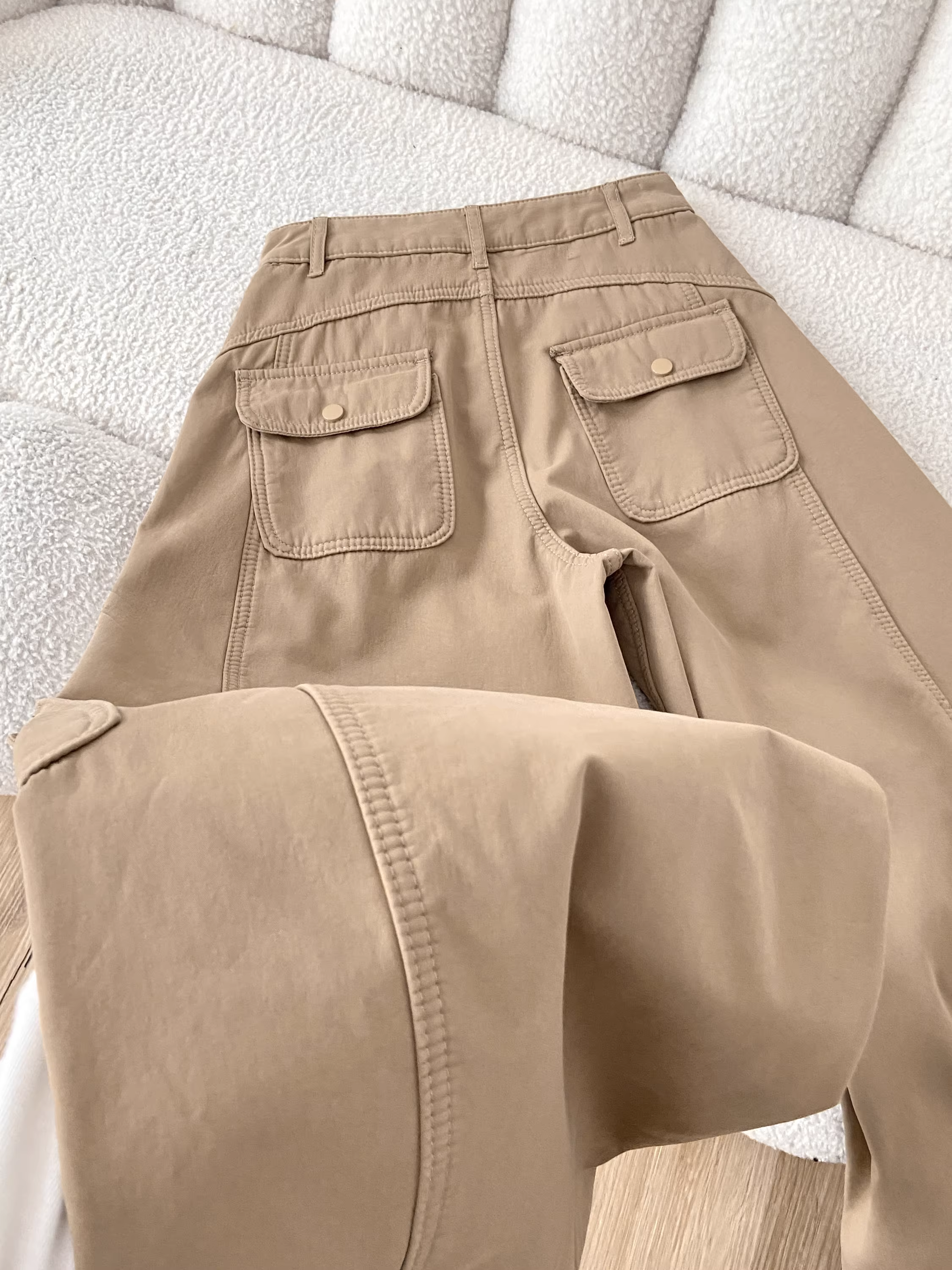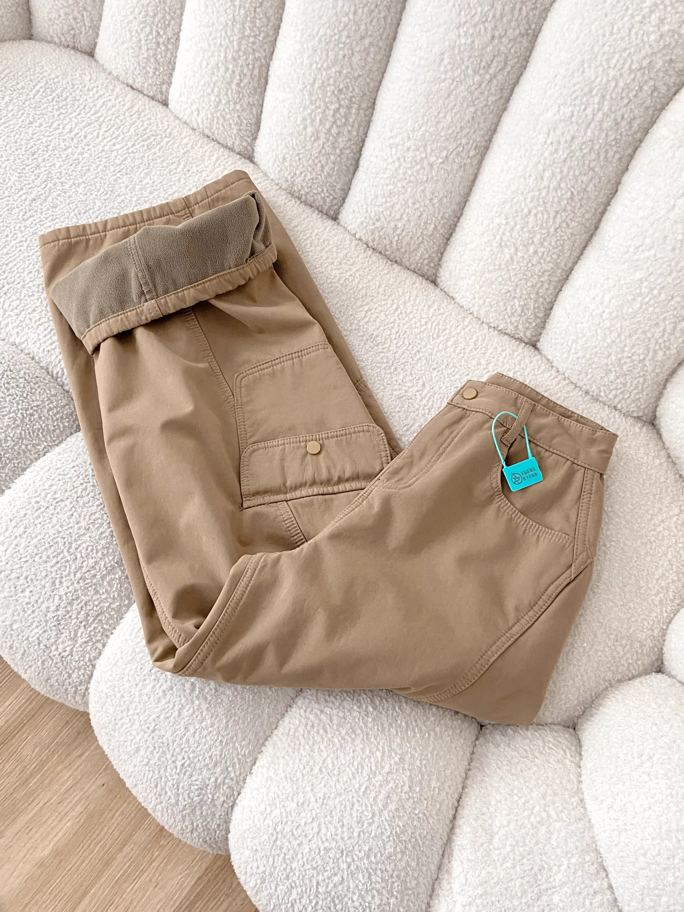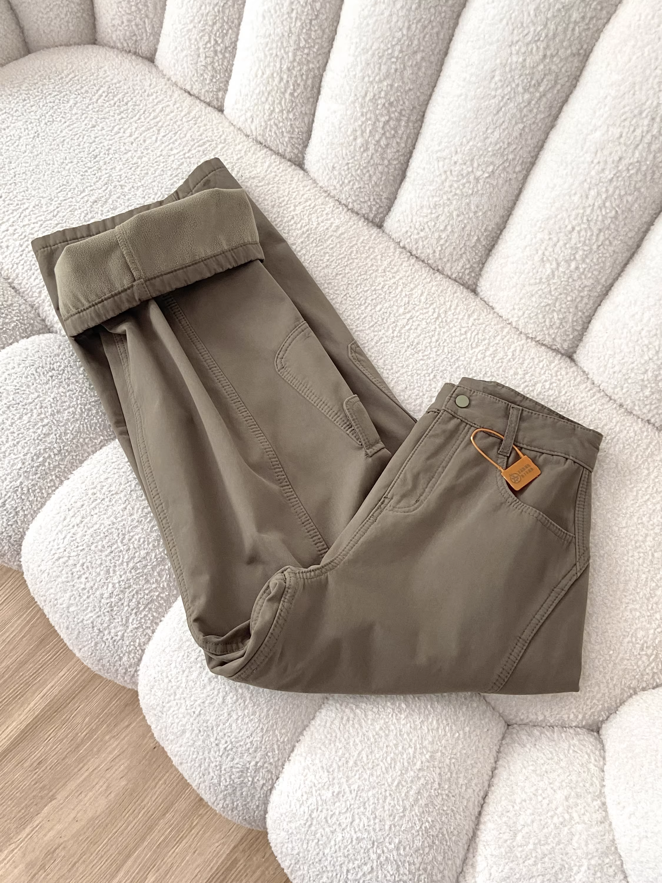 - Quần cargo ống rộng lót lông cừu đen La Chapelle dành cho nữ, kiểu dáng mới thu đông 2025, dáng thẳng phong cách Mỹ, size nhỏ nhắn