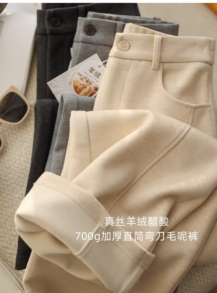- Quần cashmere lụa! Quần len acetate dày 700g, cạp cao, dáng rộng, ống thẳng, kiểu dáng thanh lịch dành cho nữ, mới cho mùa thu đông.
