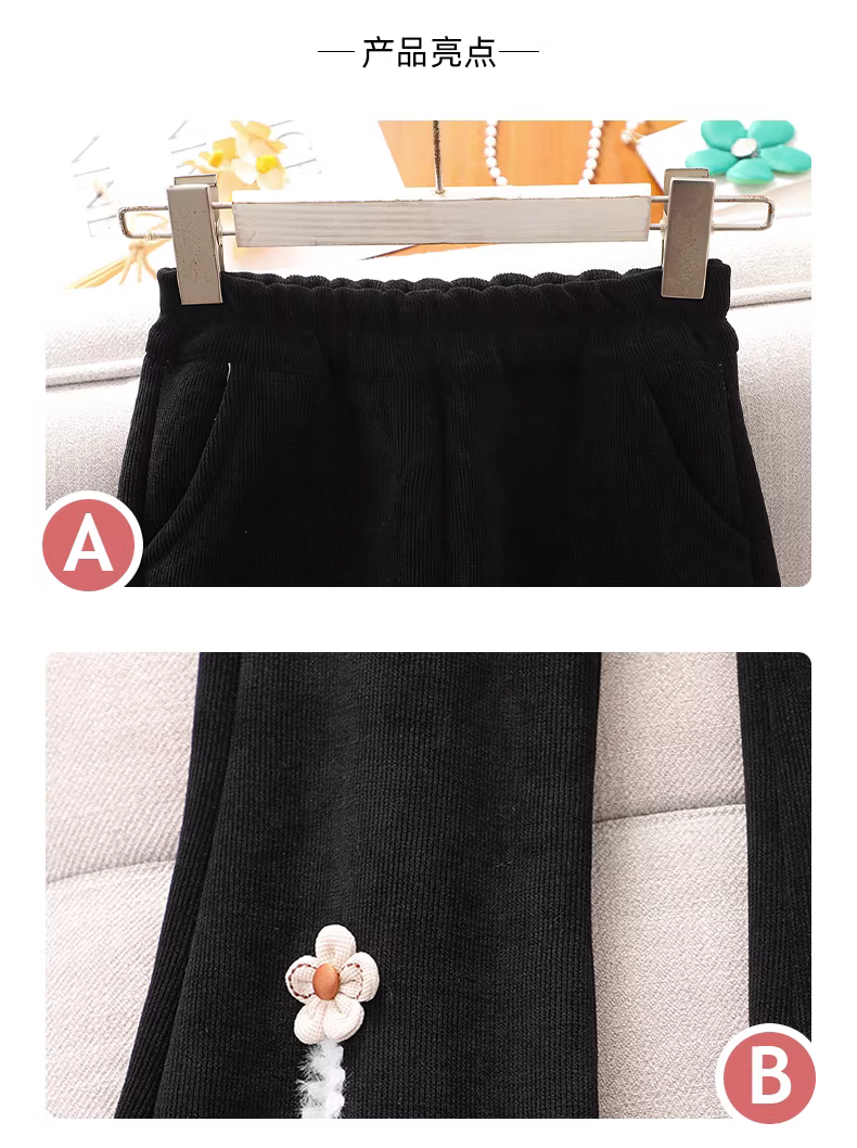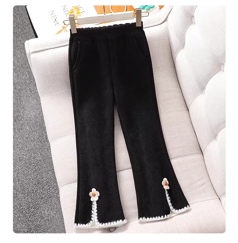 - Quần chuông bé gái 2025, quần áo trẻ em mới, lót lông giữ ấm, dài, xẻ tà, trang phục mùa đông, quần bé gái mùa thu đông, quần thường ngày