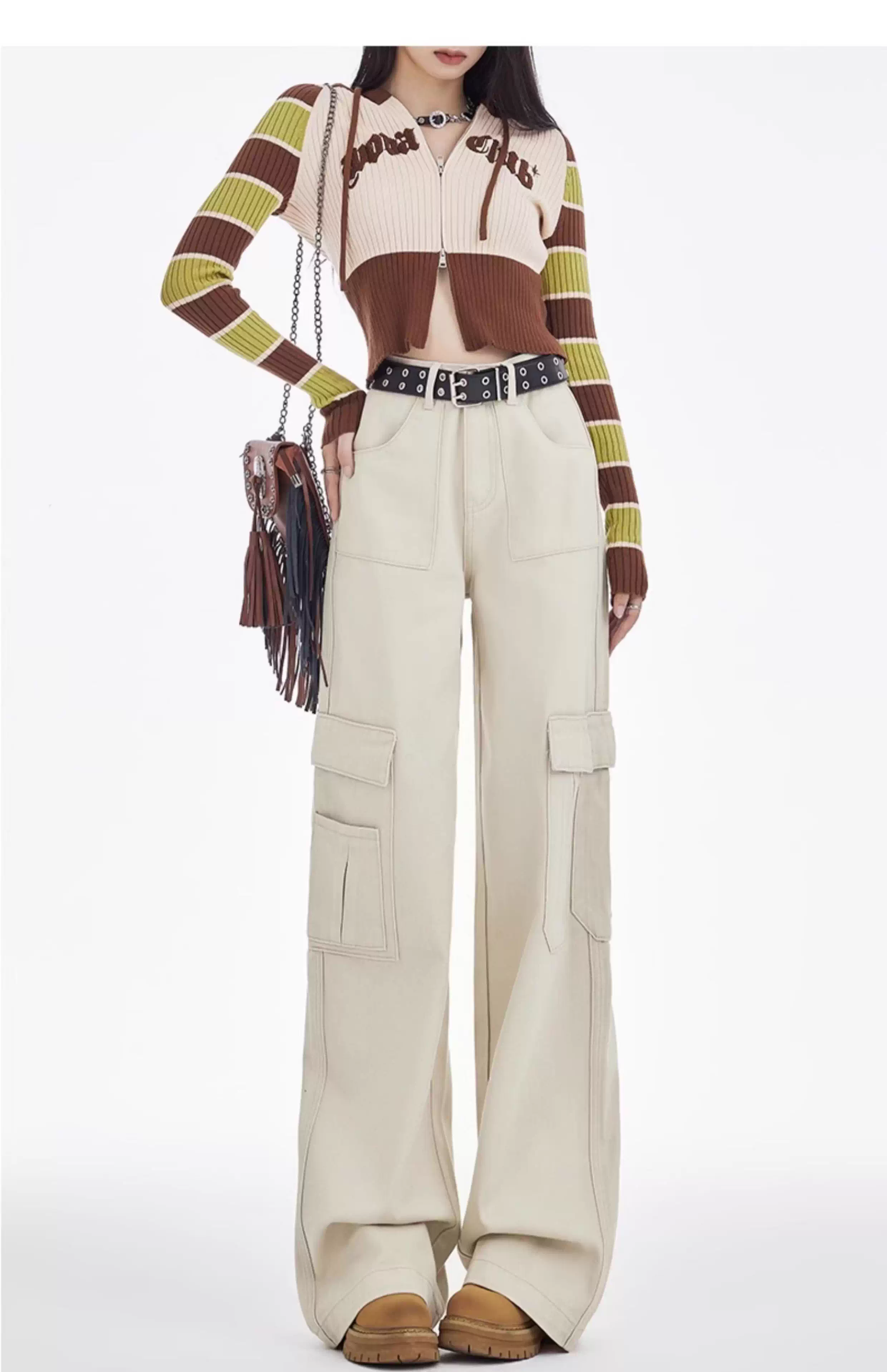 - Quần công sở kiểu Mỹ La Chapelle dành cho nữ, mẫu mới thu đông 2025, size nhỏ, quần lót lông cừu, quần ống rộng lưng cao.