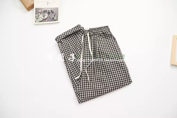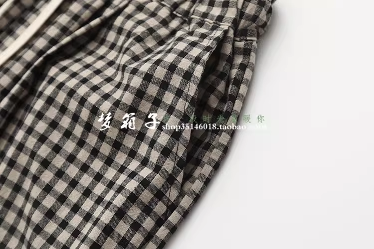 - Quần cotton kẻ ca rô lưng thun dáng rộng đa năng Dream Box Thu 2024, kiểu dáng cổ điển, dành cho nữ