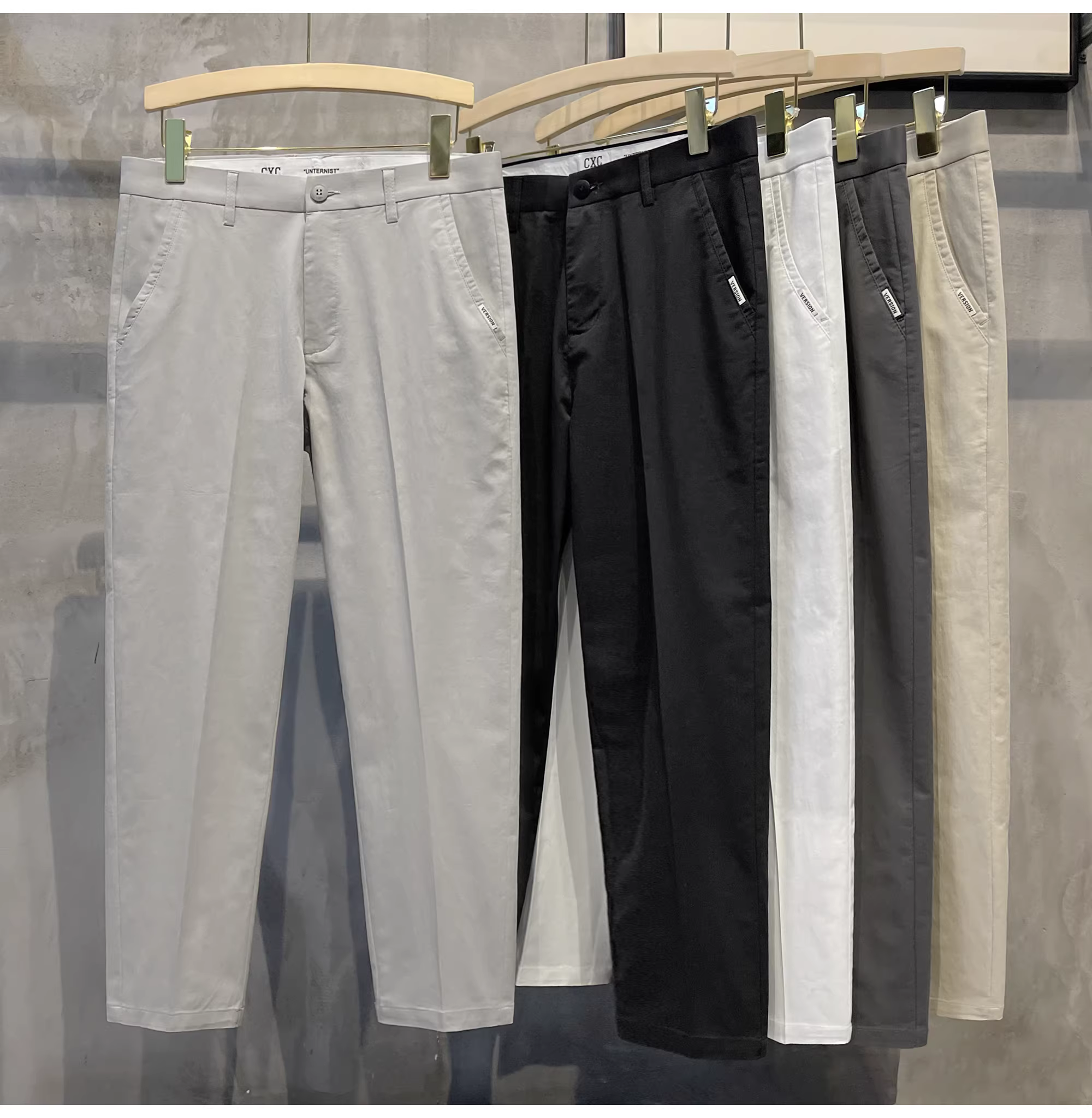Quần cotton lụa LUUD màu trơn đơn giản, quần tây nam dáng ôm vừa vặn, kiểu dáng thời trang mùa hè, quần ống đứng thon gọn