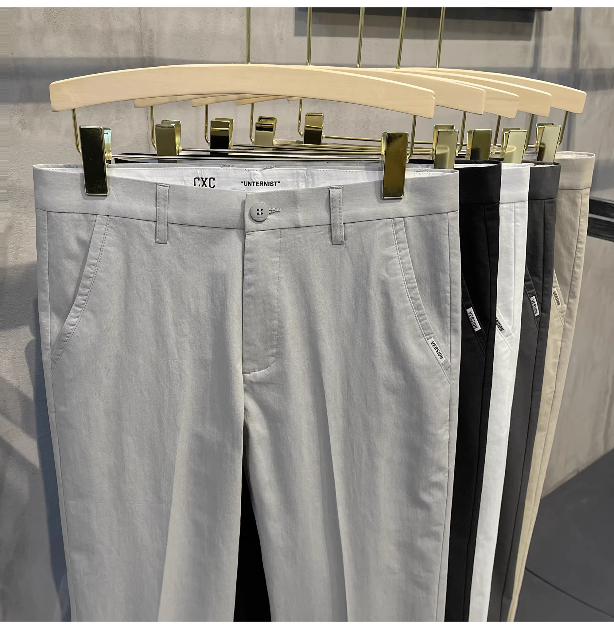 - Quần cotton lụa LUUD màu trơn đơn giản, quần tây nam dáng ôm vừa vặn, kiểu dáng thời trang mùa hè, quần ống đứng thon gọn