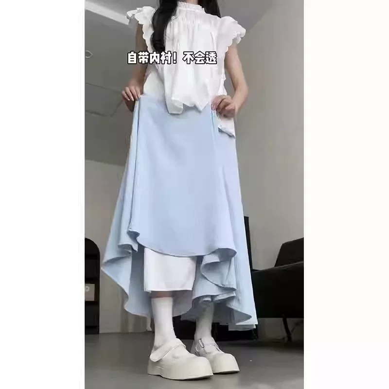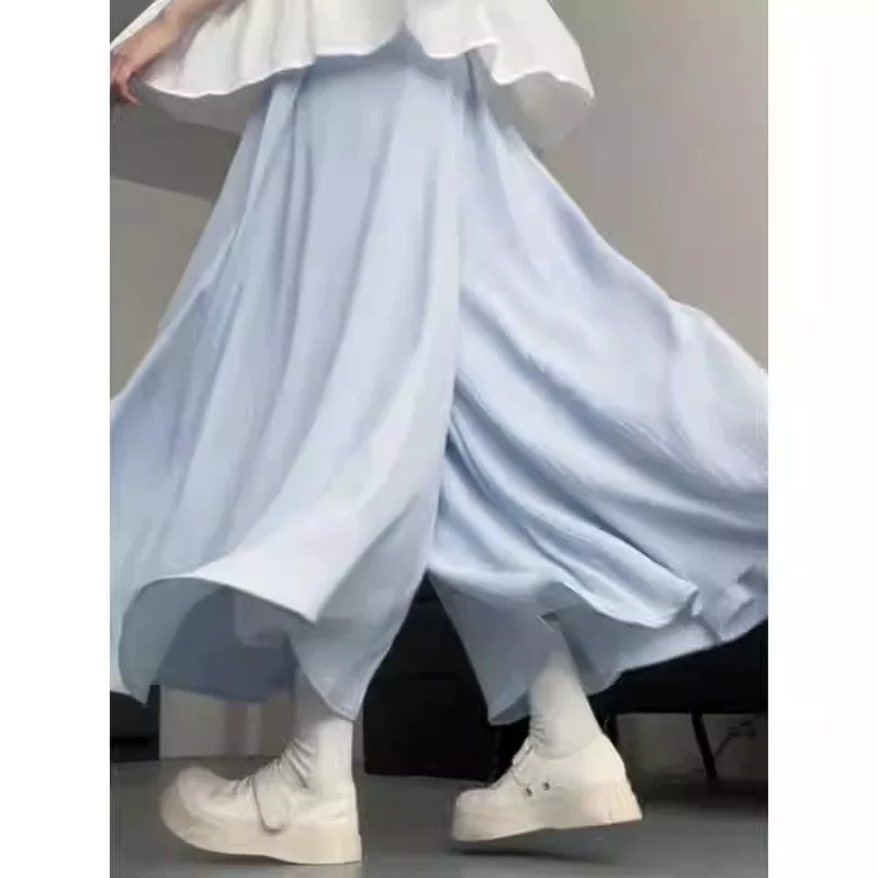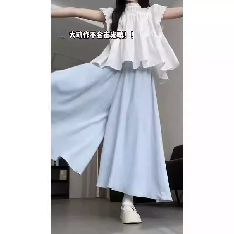 - Quần culottes màu xanh dành cho nữ, mùa hè, cỡ lớn, lưng cao, che bụng, giảm béo, dáng quả lê, nhỏ nhắn, quần ống rộng thông thường