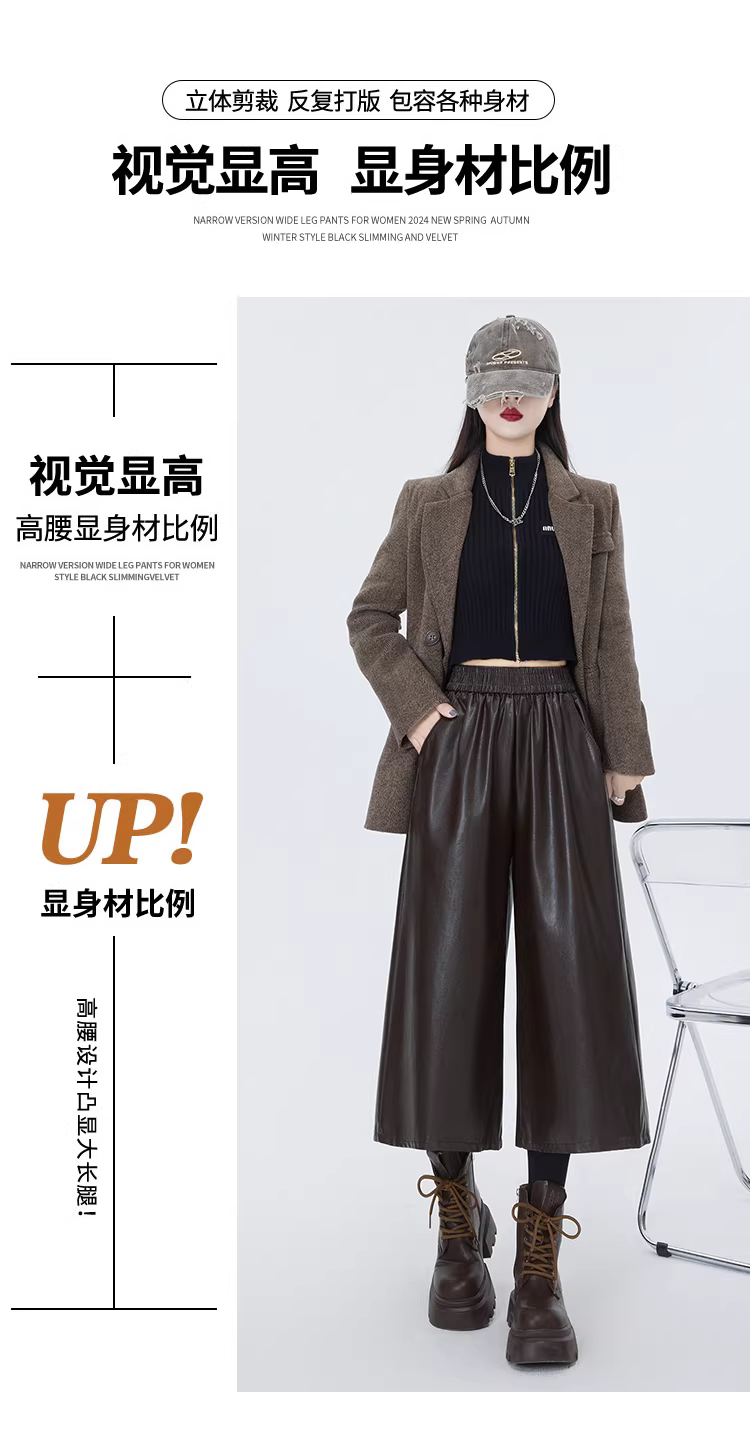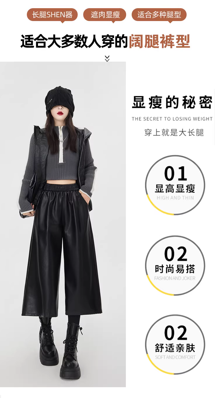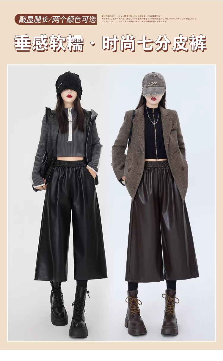 - Quần da đen ống rộng nữ thu đông quần lửng kiểu old money mới 2025 quần da PU kiểu chân váy quần kiểu Martin boot