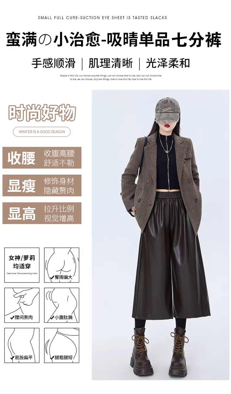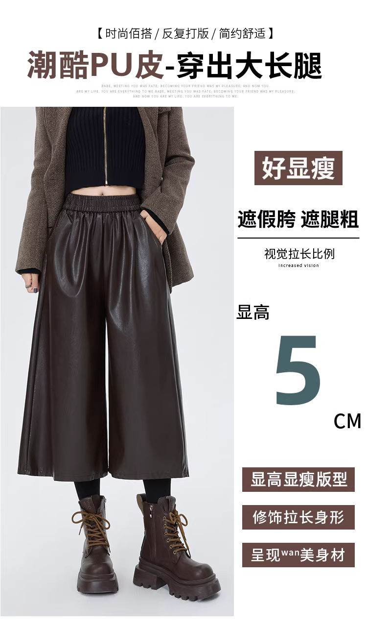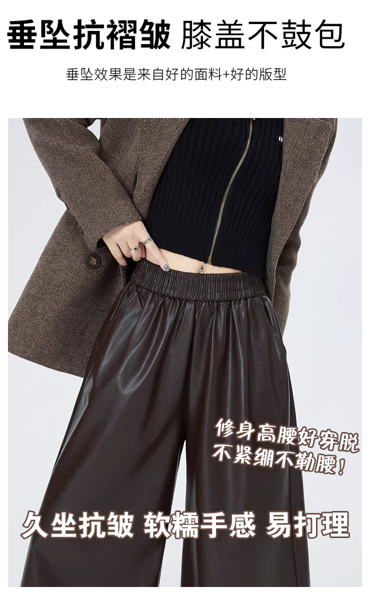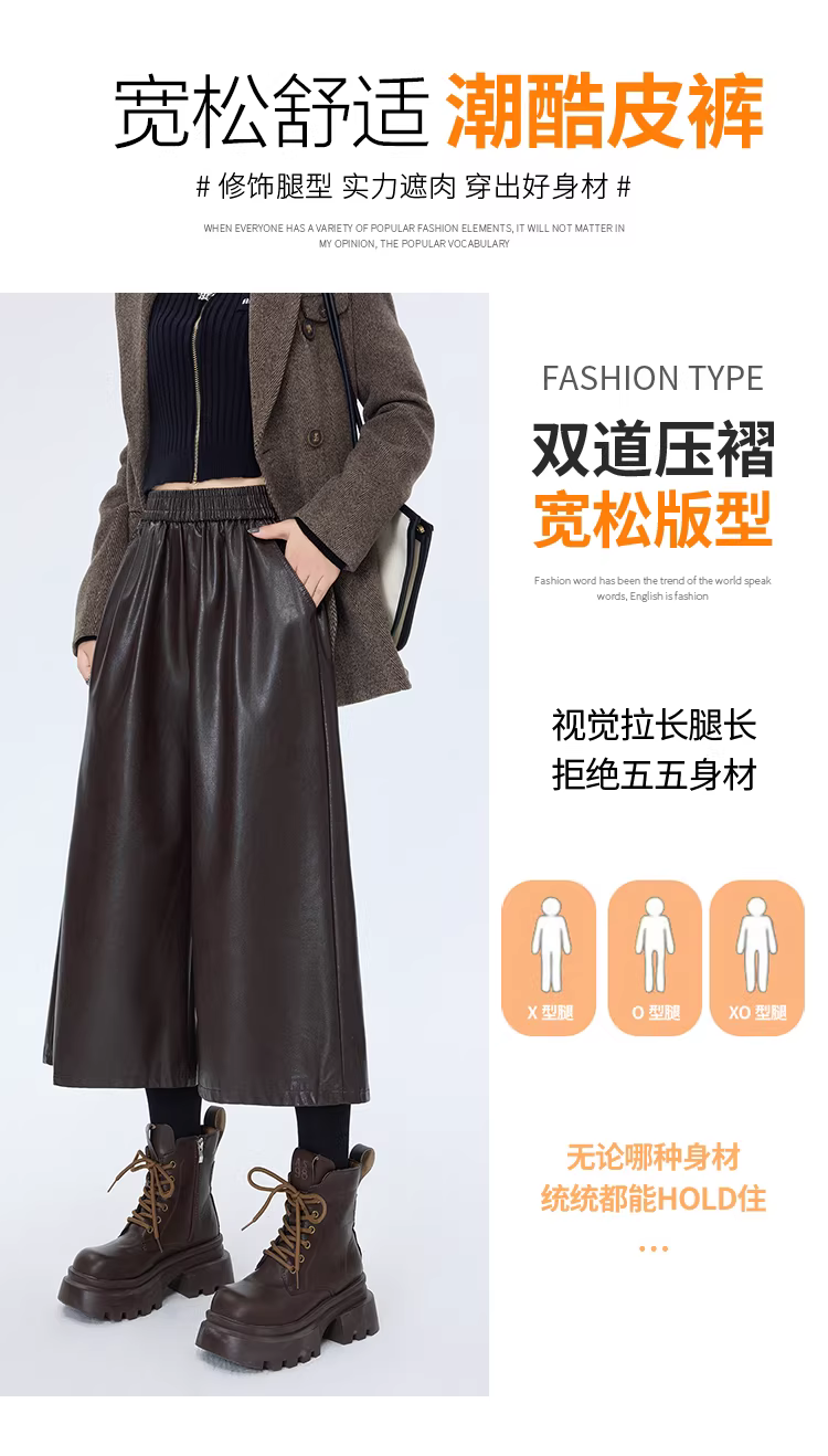 - Quần da đen ống rộng nữ thu đông quần lửng kiểu old money mới 2025 quần da PU kiểu chân váy quần kiểu Martin boot