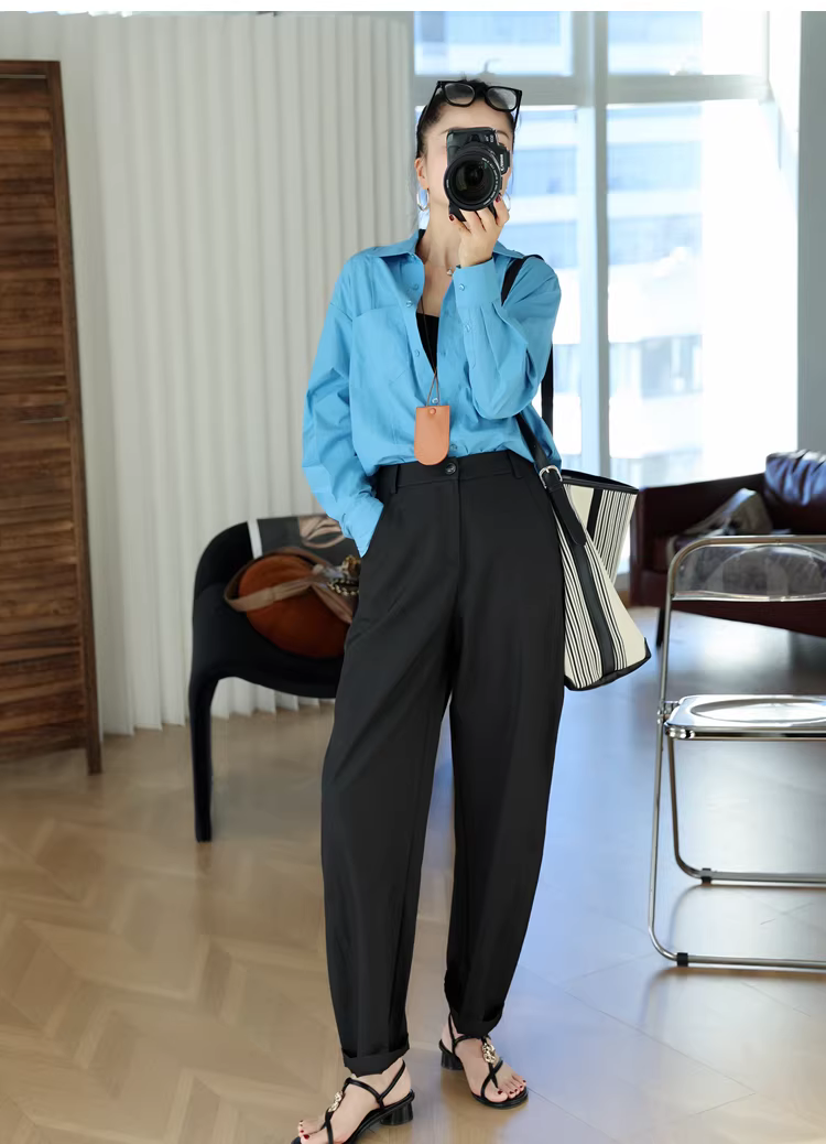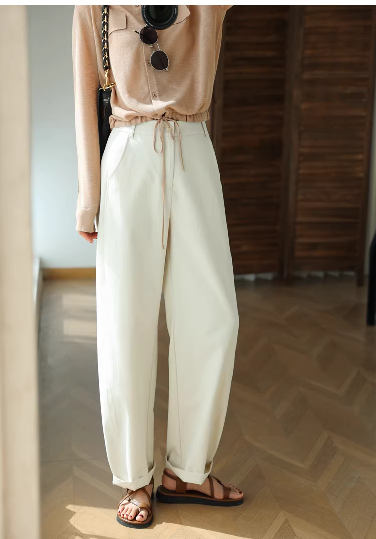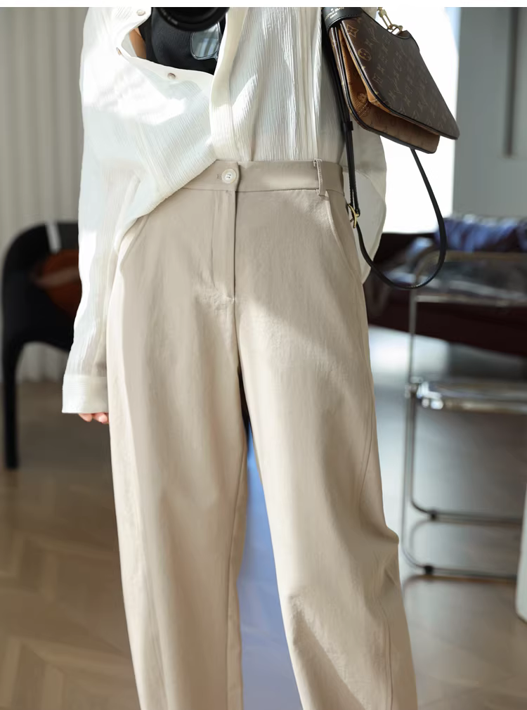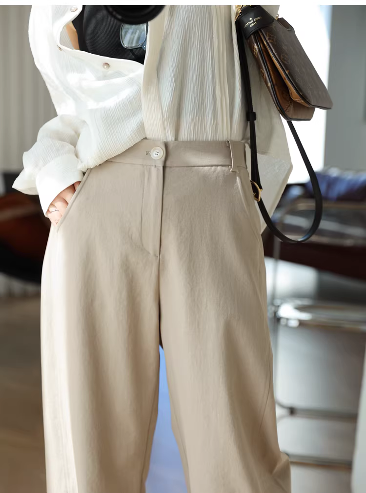 Quần dài dáng rộng, chất liệu sợi rỗng cao cấp! Nhẹ, nhanh khô, không nhăn, cạp cao, kiểu dáng cong, dành cho nữ.