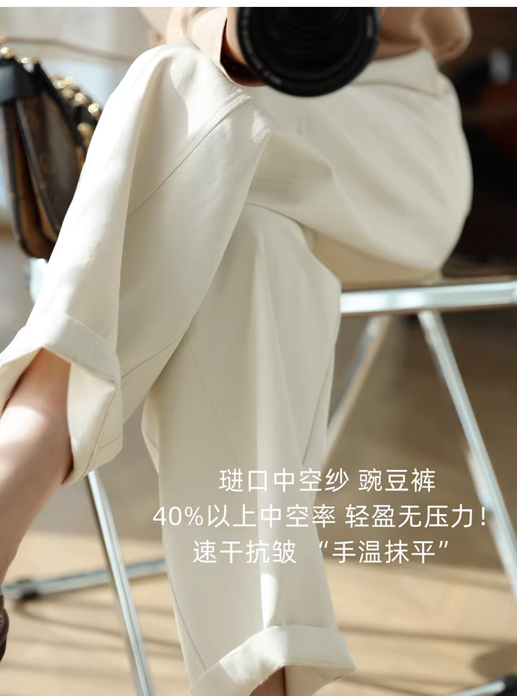 琎口chao轻中空纱弧形豌豆裤!