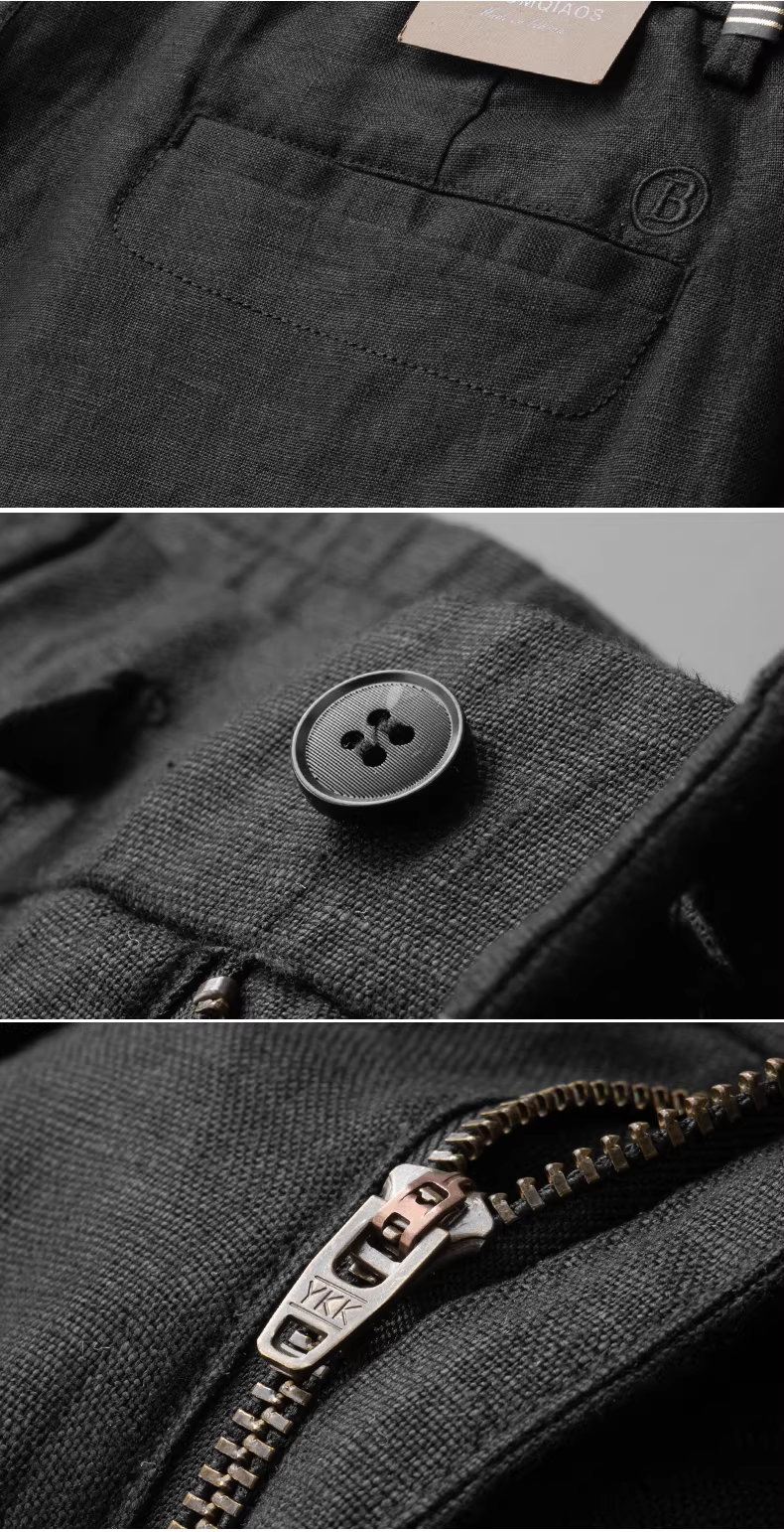 - Quần dài dáng thẳng 100% vải lanh nguyên chất dành cho nam có eo co giãn, thoáng khí, đa năng, quần dài nhẹ có thêu chữ