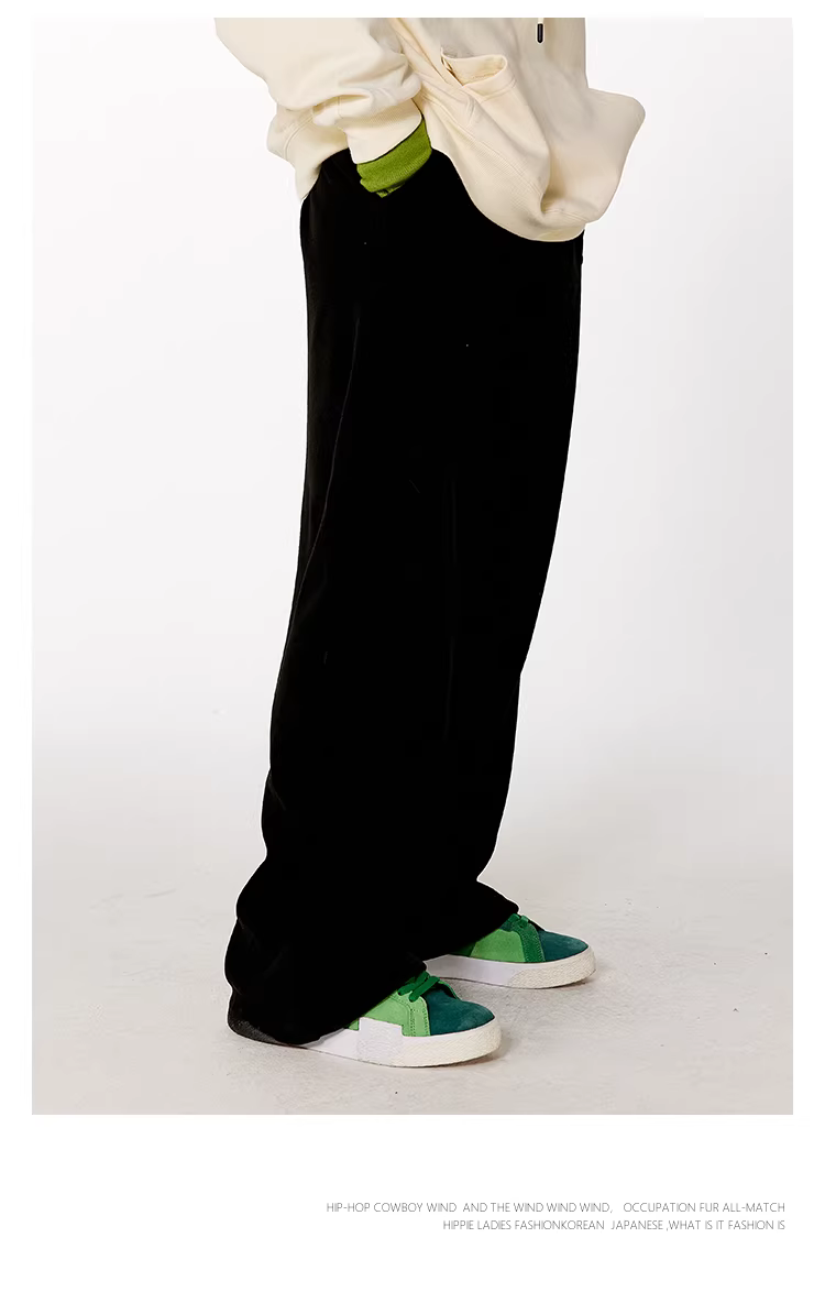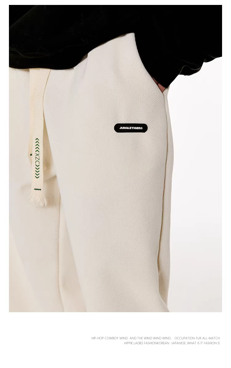 - Quần dài dáng thẳng phong cách Mỹ, chất liệu mềm mại, kiểu dáng xu hướng, rộng thùng thình, màu trắng, cạp cao, quần thể thao dành cho nam