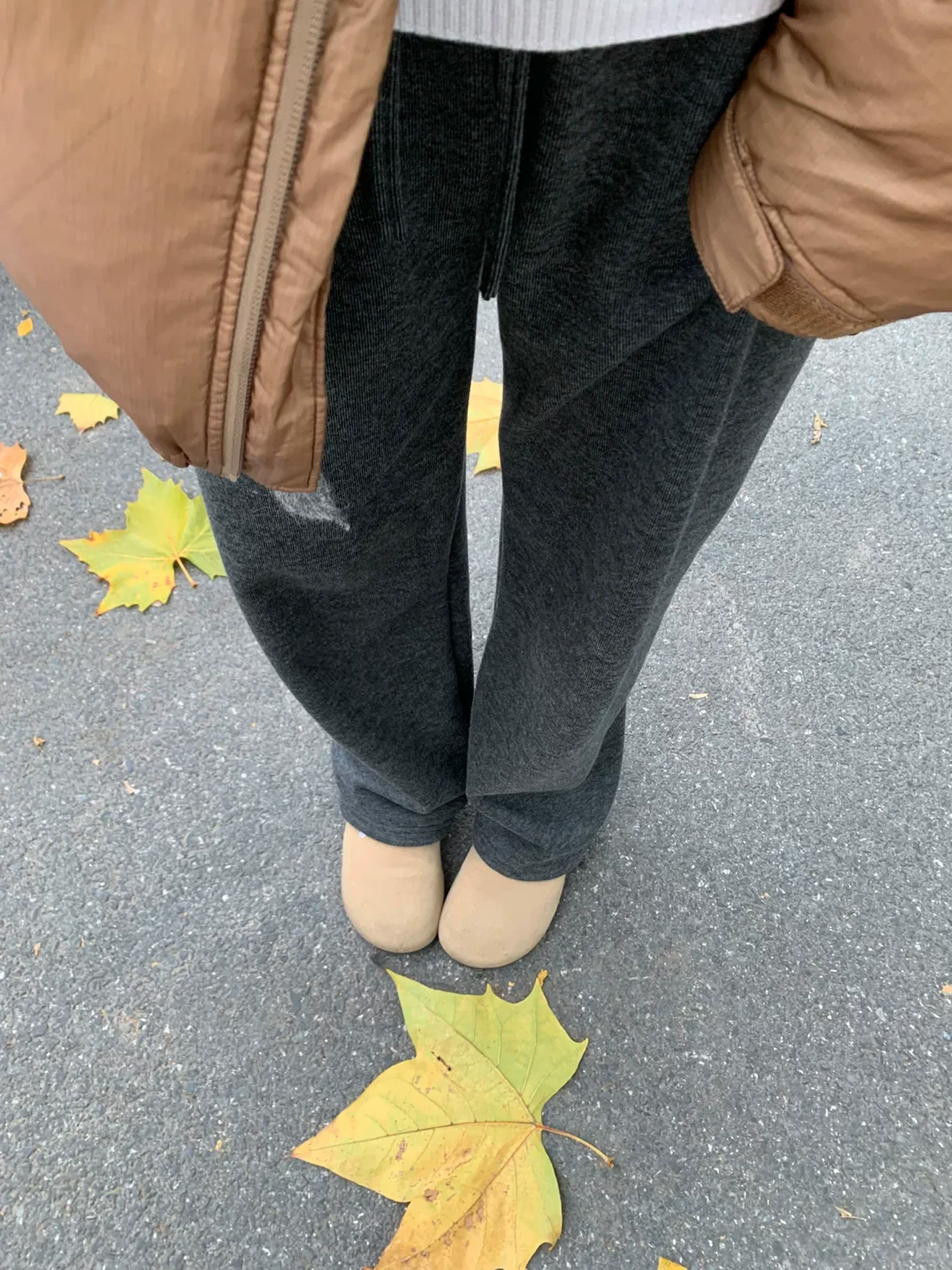 - Quần dài dày dặn có lót lông cừu màu xám đậm dành cho nữ, cỡ lớn mùa đông, cạp cao, giảm béo, quần ống rộng dáng thẳng thông thường.