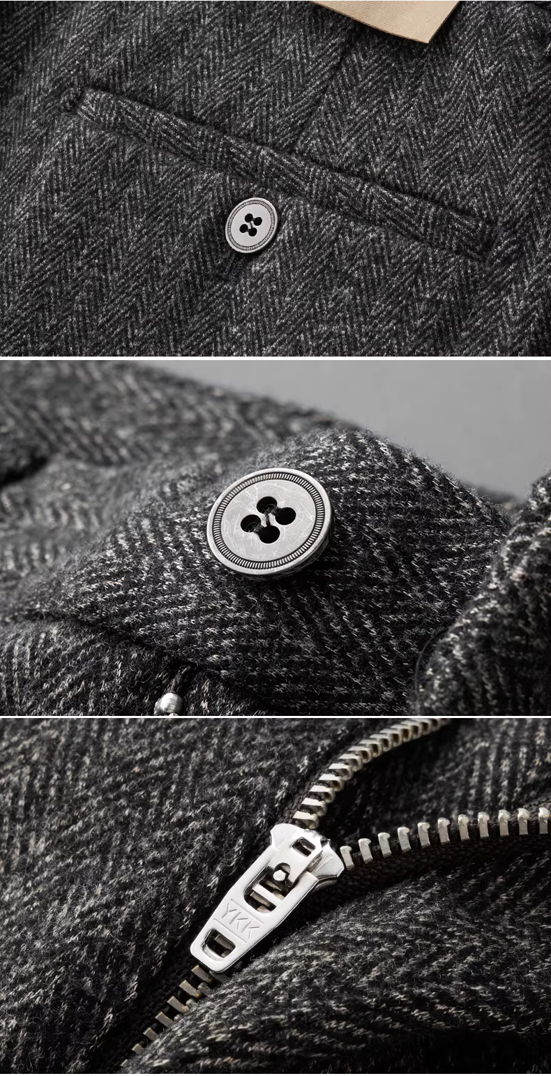 Quần dài nam chất liệu len cao cấp nhập khẩu, kiểu dáng thẳng, họa tiết xương cá, phong cách Anh, ấm áp và thời trang, thích hợp cho mùa thu đông.