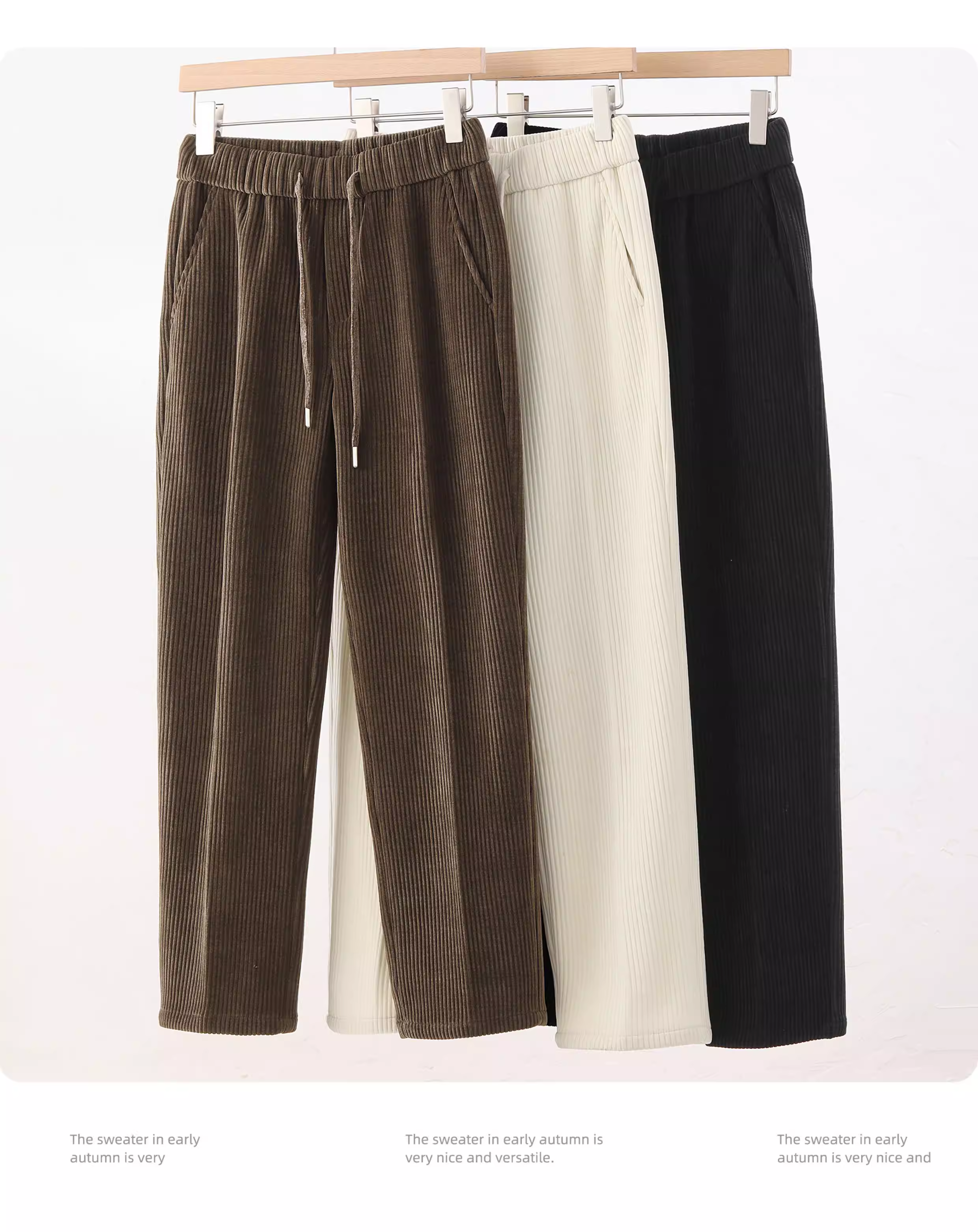 - Quần dài nam chất liệu nhung gân dày dặn giữ ấm mùa thu đông, kiểu dáng thời trang, lưng thun co giãn, cạp chun, dáng thẳng.