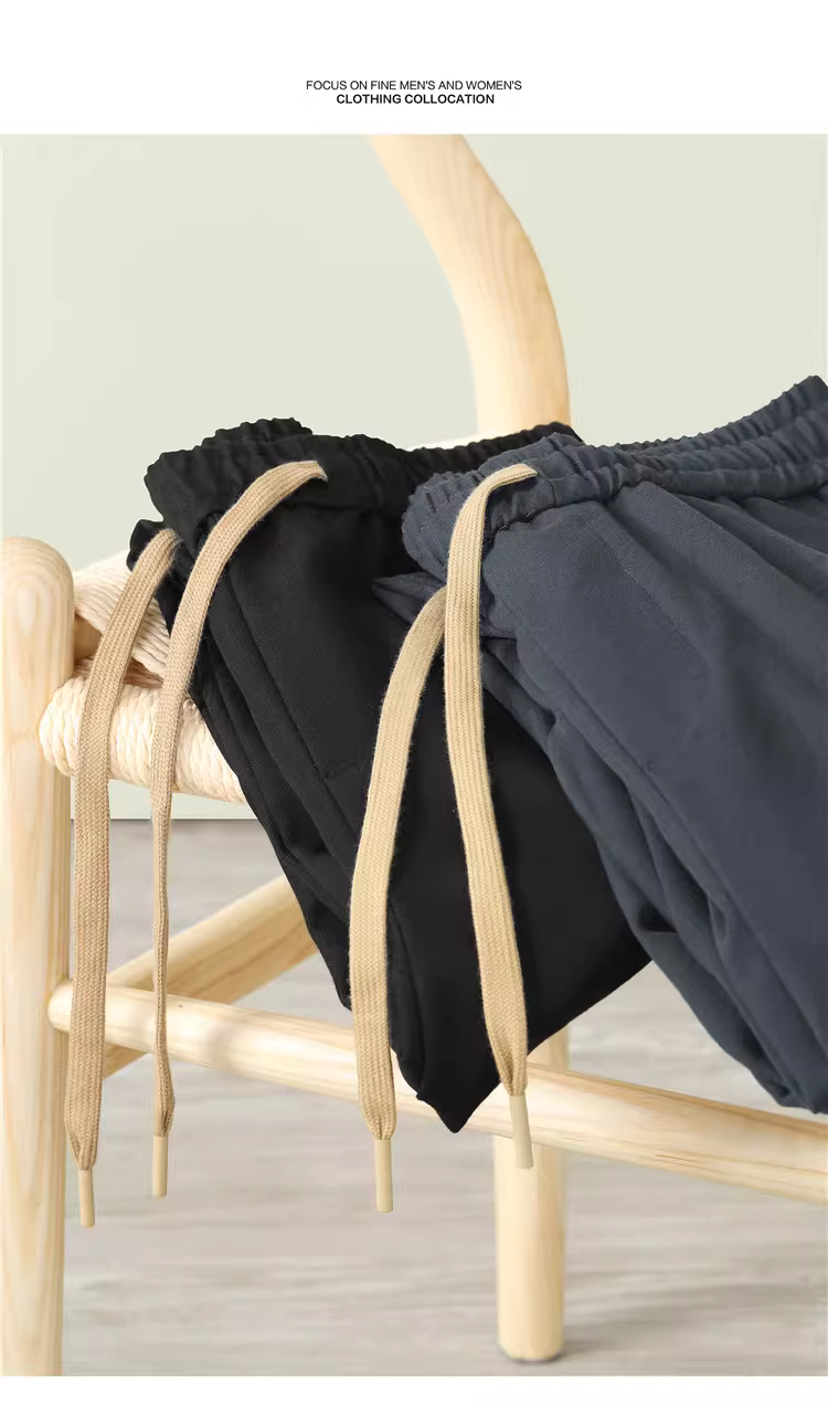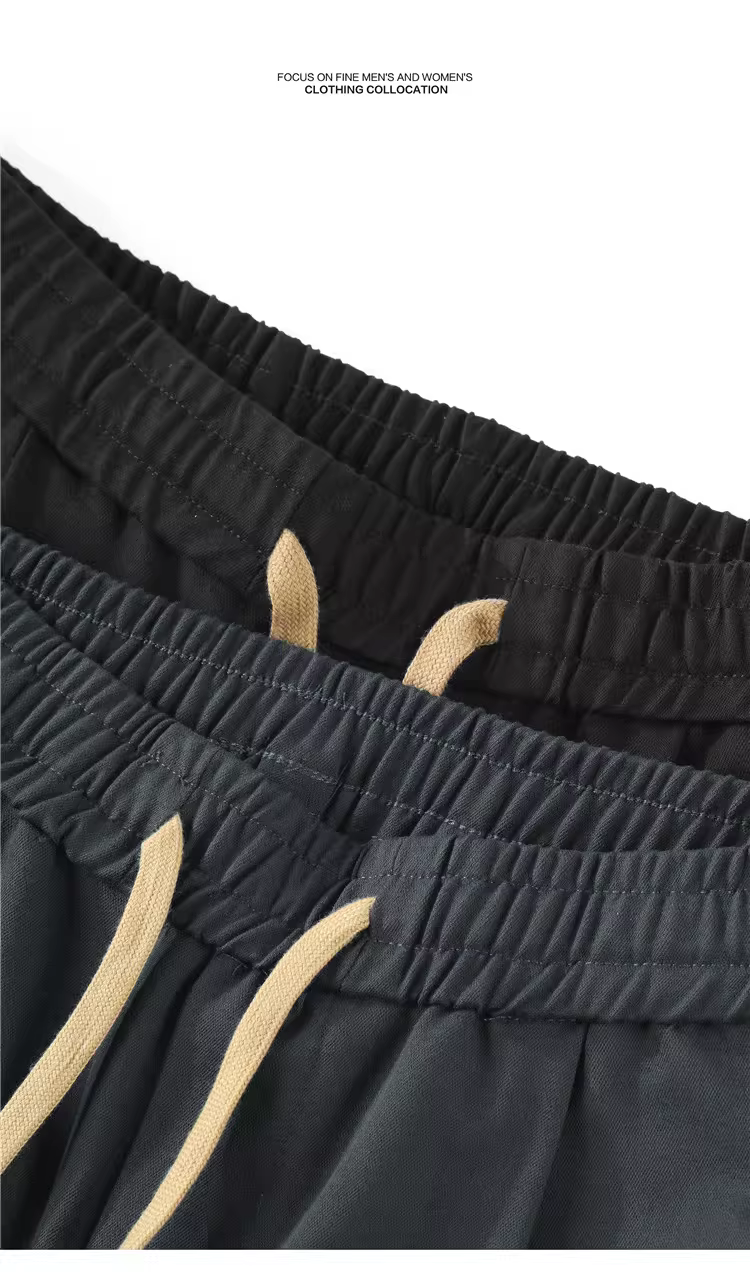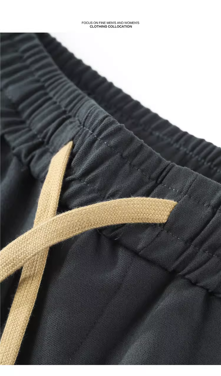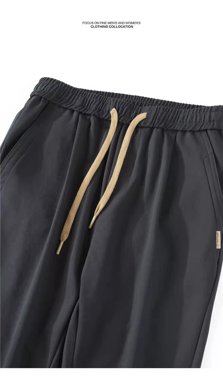 Quần dài nam JIEYI mùa hè thời trang, chất liệu sợi core-spun, kiểu dáng dây rút, phong cách casual, kiểu dáng vintage cơ bản, ôm dáng, quần thể thao, quần harem dài