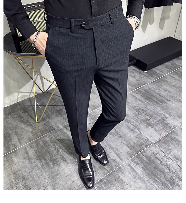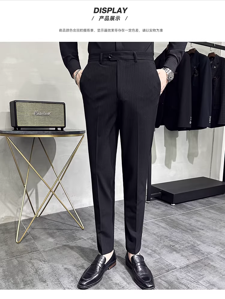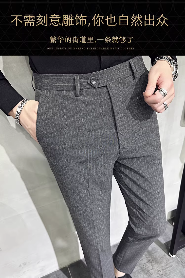 Quần dài nam sọc kẻ Xuân Thu kiểu dáng ôm body thời trang, quần âu lịch sự cao cấp phong cách Hàn Quốc