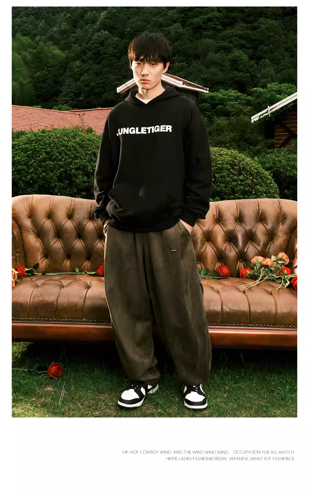 - Quần dài suông chất liệu da lộn xếp ly ba chiều Jungle Tiger, thiết kế thu đông 2025, dành cho nam và nữ