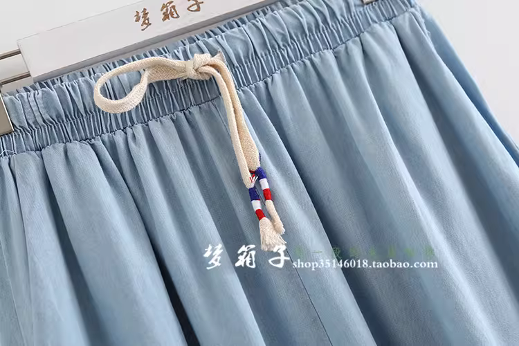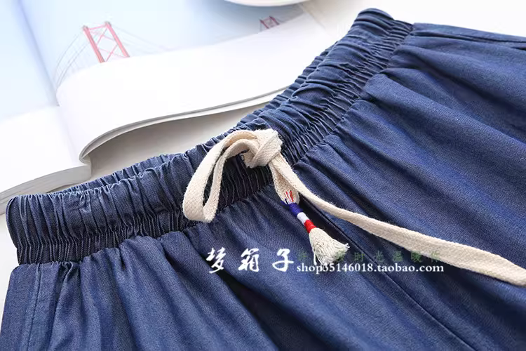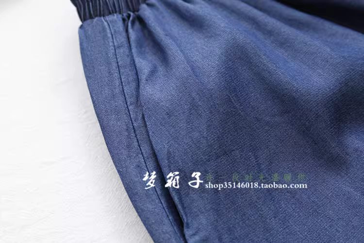 天丝牛仔面料,薄款,无弹力,松紧裤口,灯笼裤上身美美哒