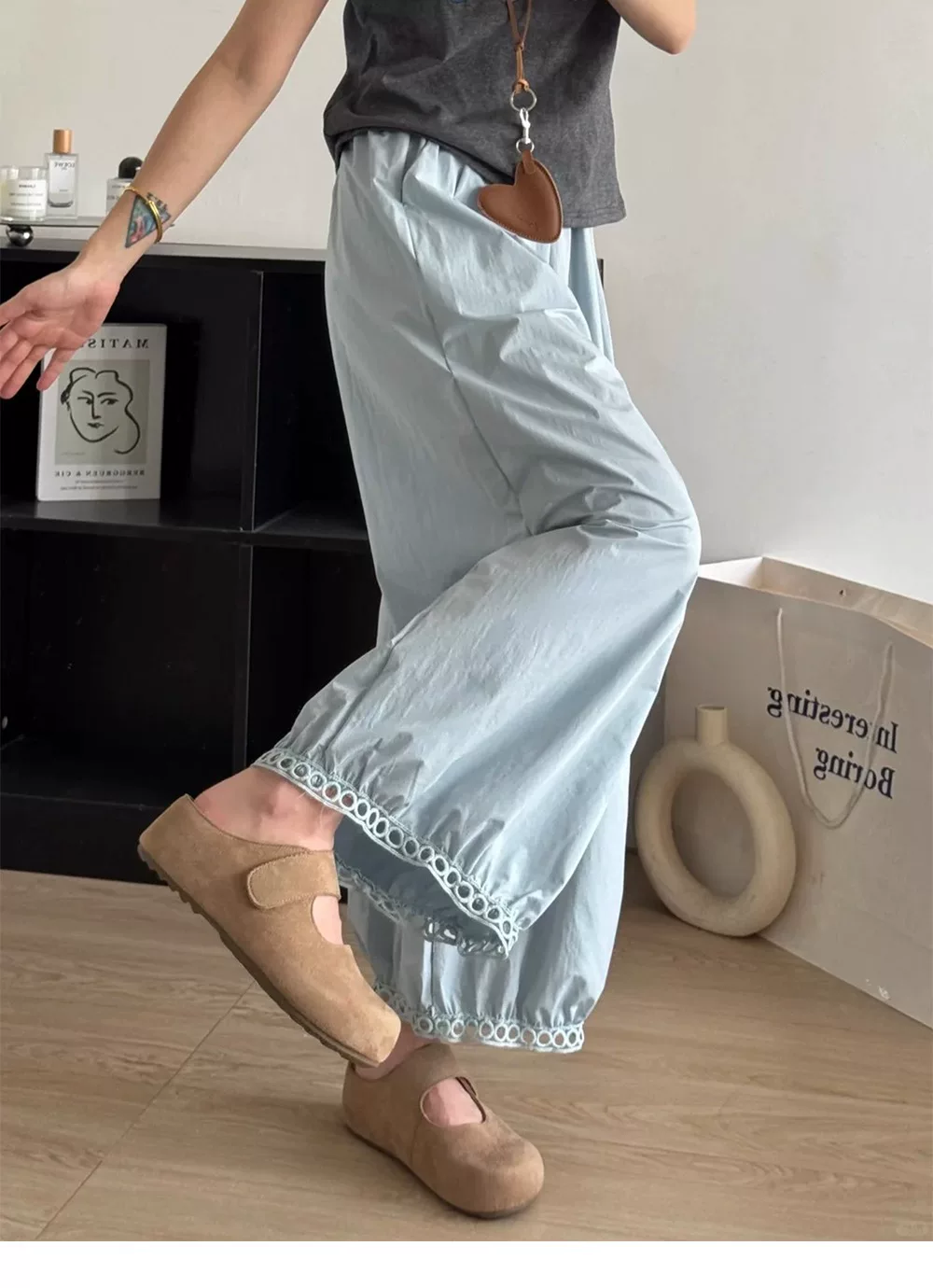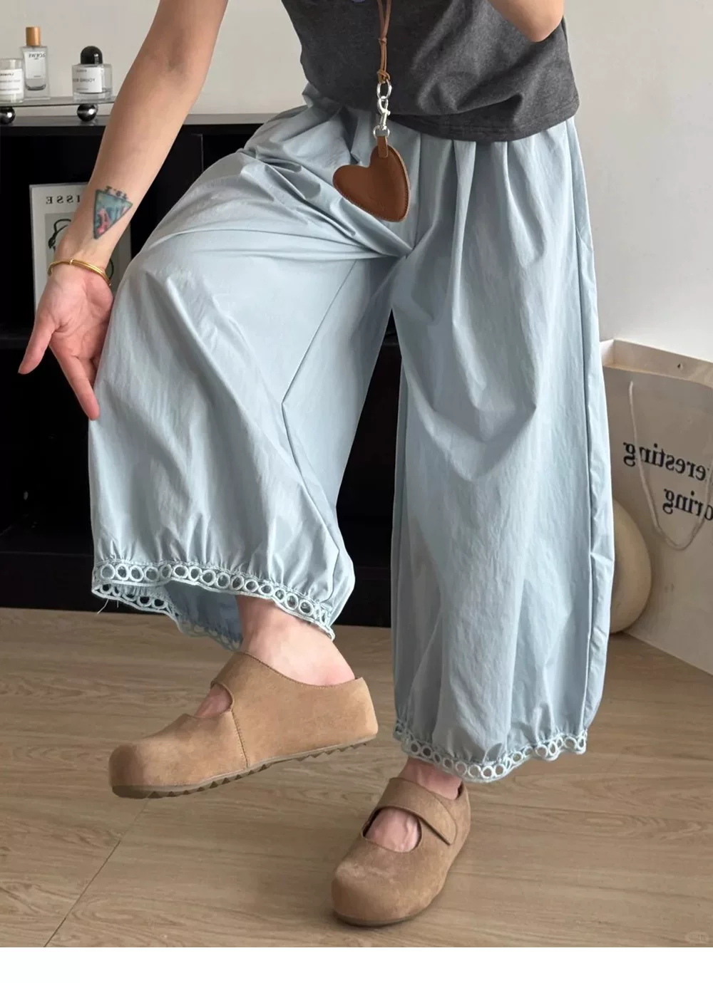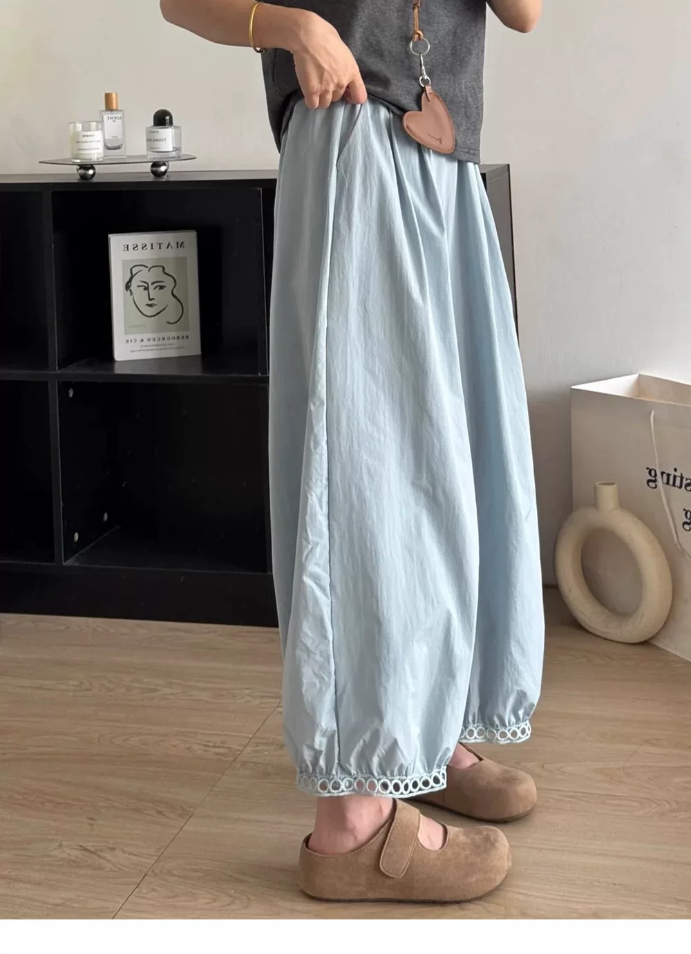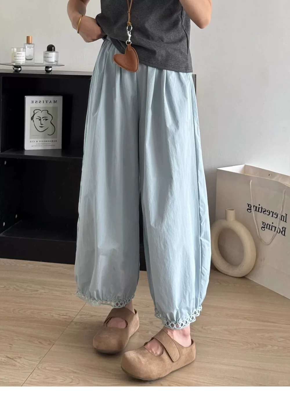 - Quần đèn lồng màu xanh thường ngày dành cho nữ, mùa hè 2025, mỏng, cỡ lớn, lưng cao, rộng rãi, tôn dáng, ống rộng, quần mát mẻ.