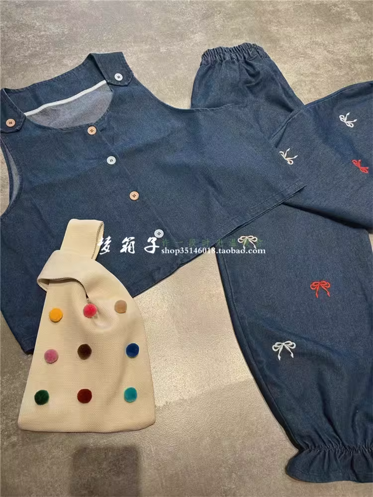 棉质牛仔面料,蝴蝶结刺绣牛仔裤