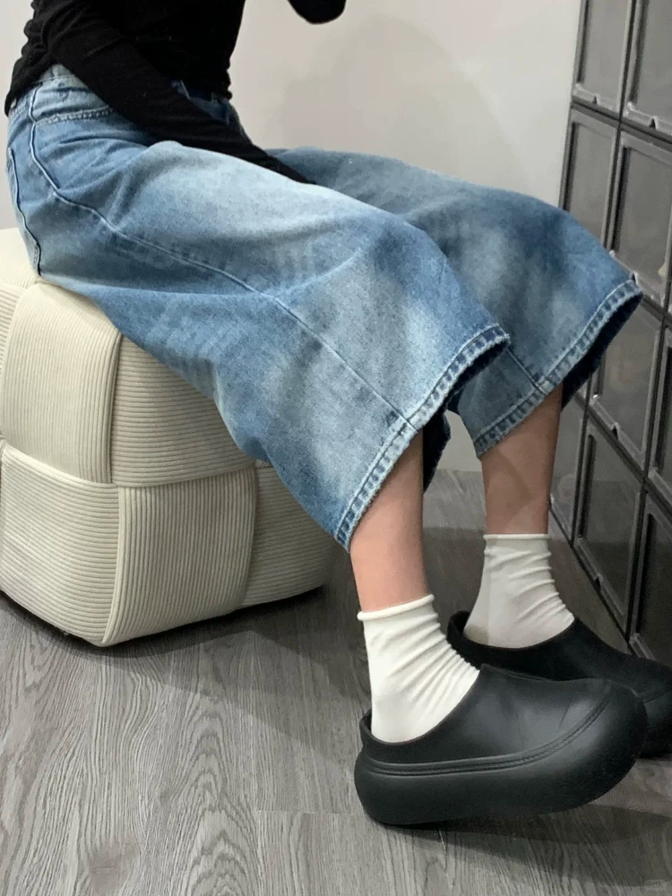 - Quần denim crop kiểu cổ điển Mỹ dành cho nữ, cỡ lớn mùa hè, lưng cao, dáng rộng, tôn dáng, dáng quả lê, quần ống rộng dài tám phần.