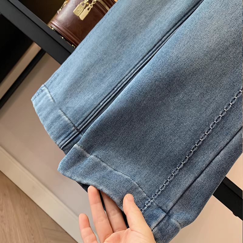 - Quần denim dày dặn lót lông phong cách Hàn Quốc đa năng cho trẻ em, quần ống rộng dáng rộng mặc thường ngày cho mùa đông.