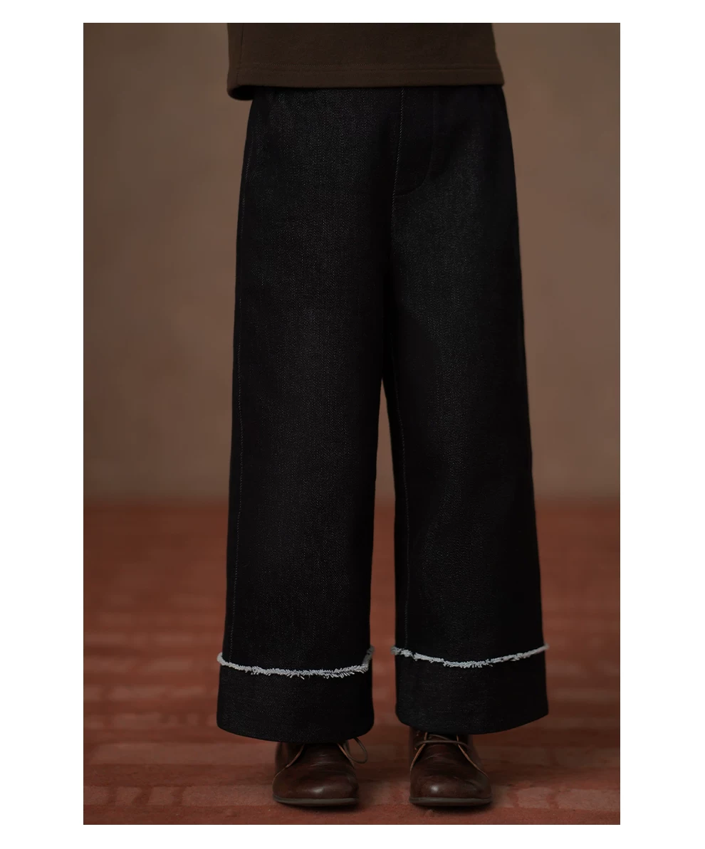 - Quần denim mùa đông cho trẻ em, quần dài đen đơn giản, phong cách thường ngày dành cho bé gái, quần ống thẳng có lớp lót lông cừu giữ ấm.