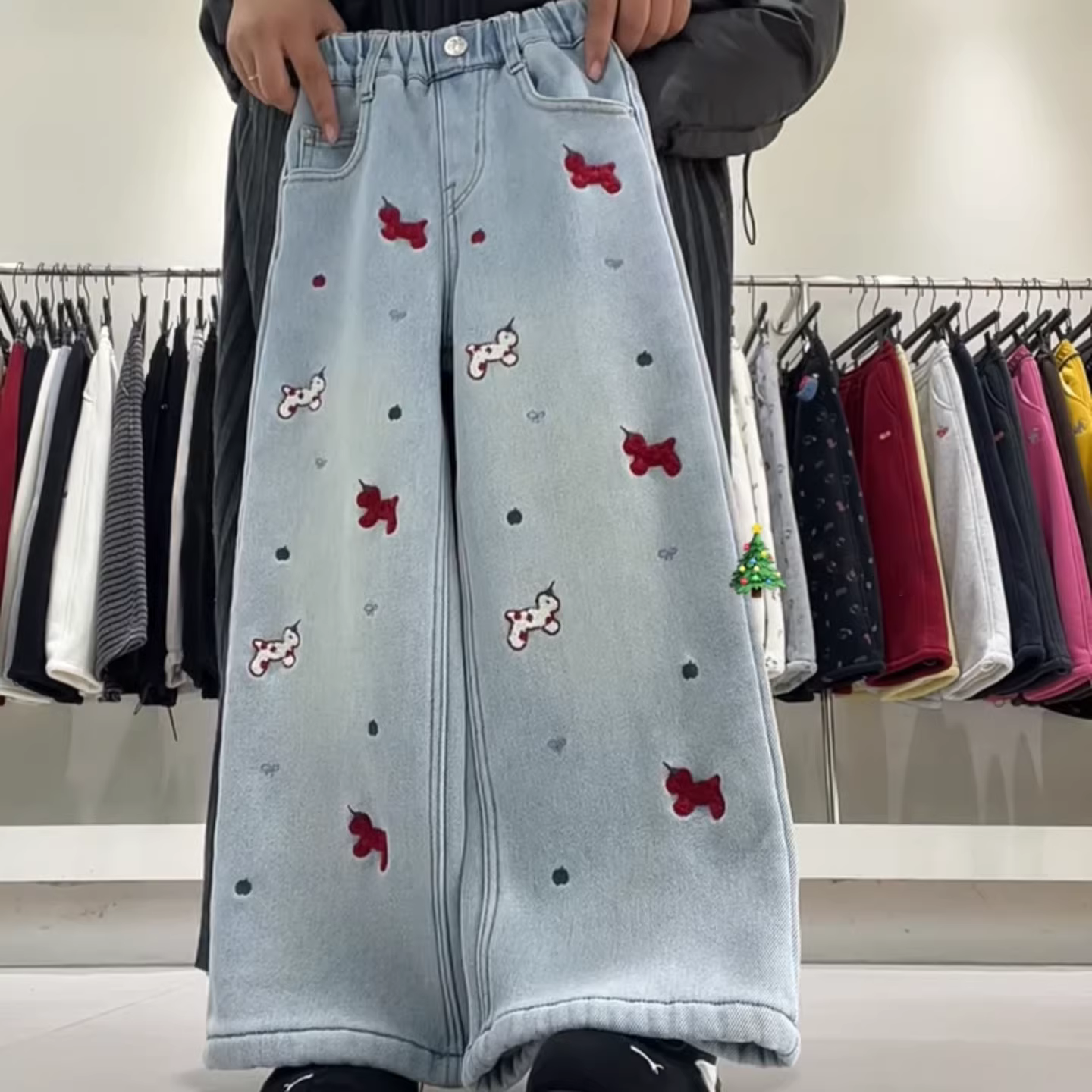- Quần denim ống thẳng có lót lông cừu mùa đông dành cho nữ, quần ống rộng siêu mềm, quần dài chạm sàn, quần dài nhỏ nhắn, hợp thời trang.