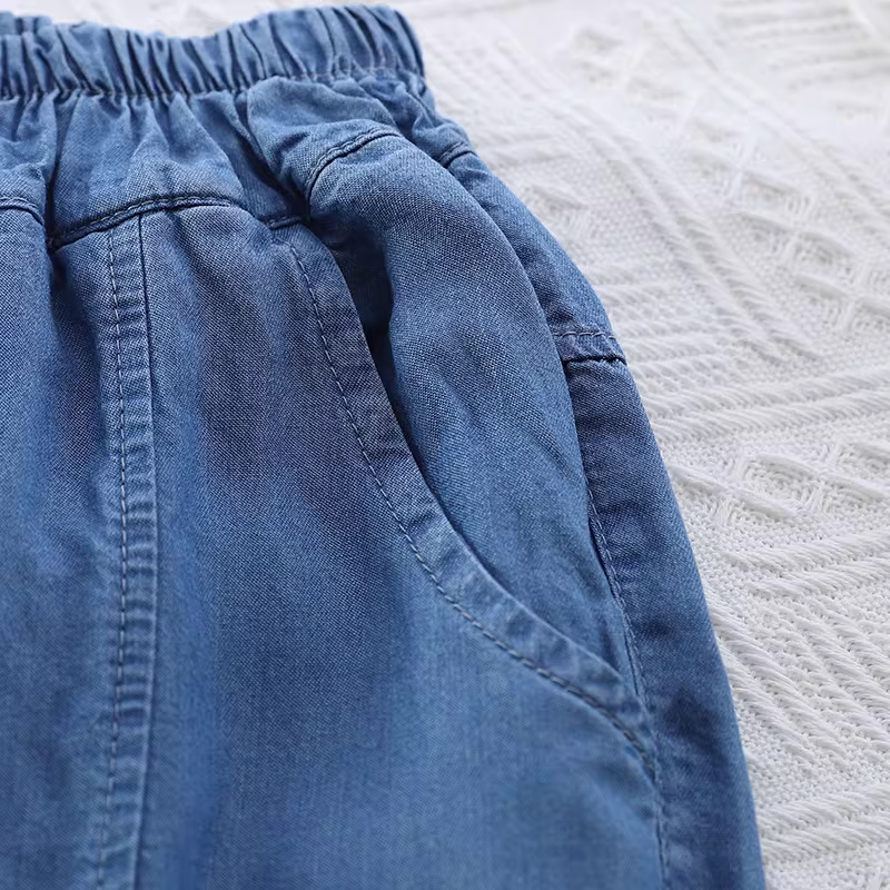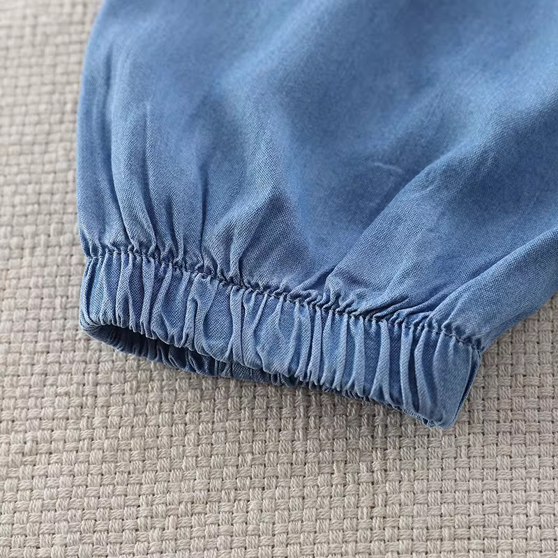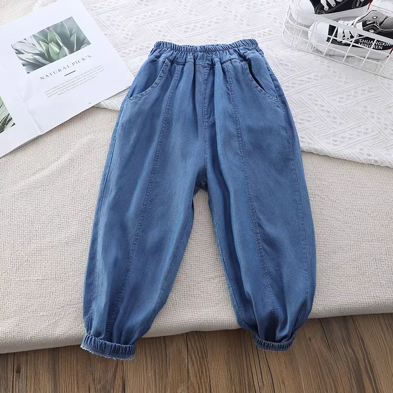 - Quần denim Tencel bé trai bé gái kiểu hè 2025, quần trẻ em chất liệu mỏng thoáng, màu trơn, chống muỗi