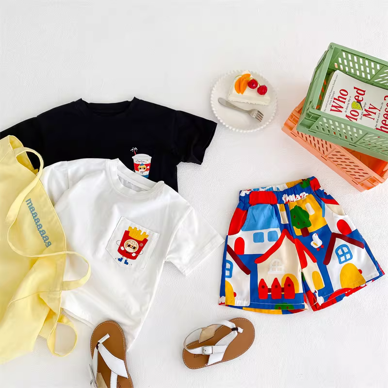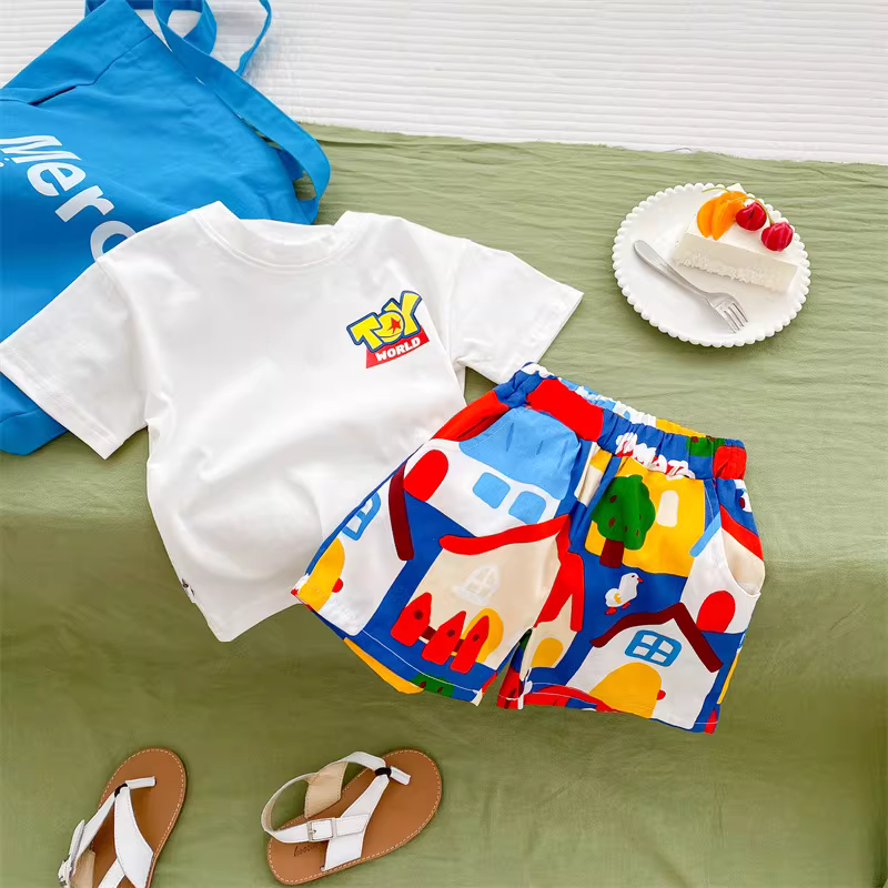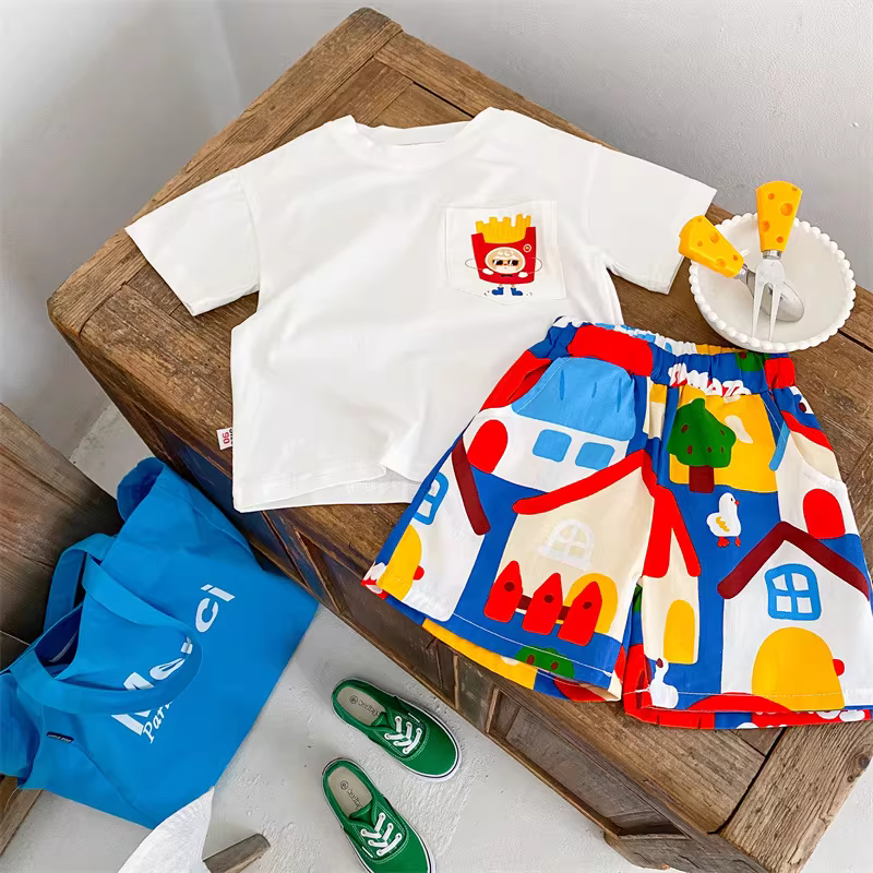 - Quần đùi cotton trẻ em hè 2025 kiểu dáng cho bé trai và bé gái, dễ thương, thoải mái, thoáng khí, rộng rãi, họa tiết ngôi nhà nhỏ, quần đùi dài đến đầu gối