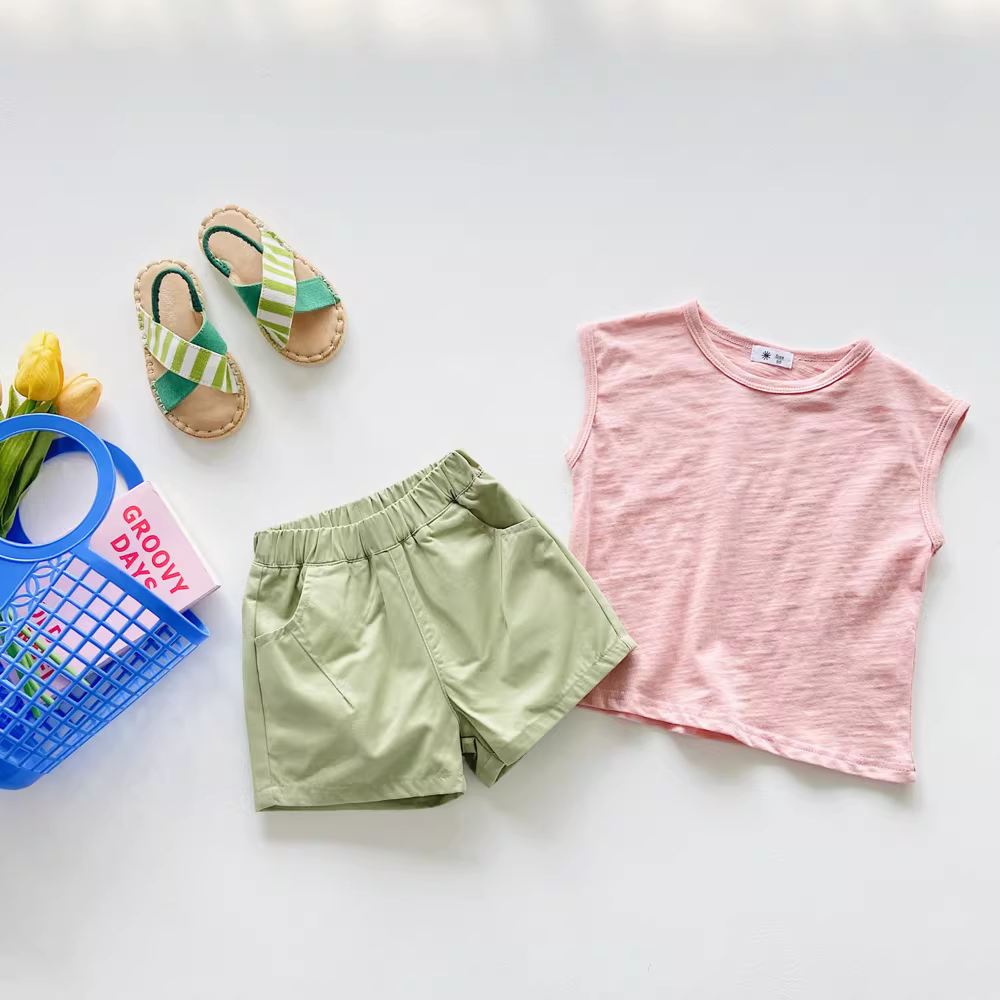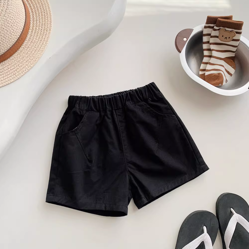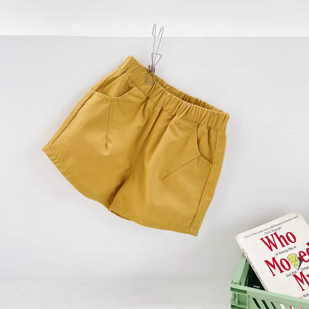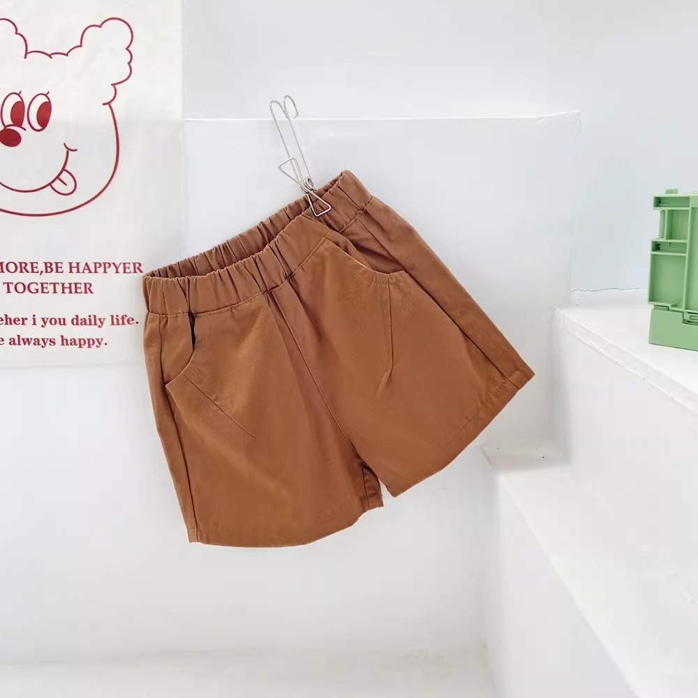 Quần đùi cotton trẻ em mùa hè 25 mẫu mới quần cargo năng động đa năng bé trai bé gái chất liệu mỏng màu trơn dài đến đầu gối