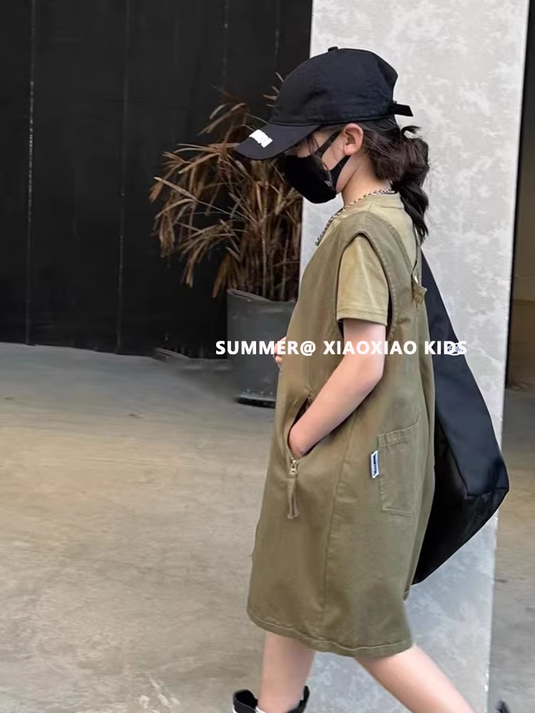 - Quần đùi yếm bé gái hè 2025 kiểu mới quần kiểu Hàn Quốc thời trang năng động quần cargo trẻ em hè quần năm phần