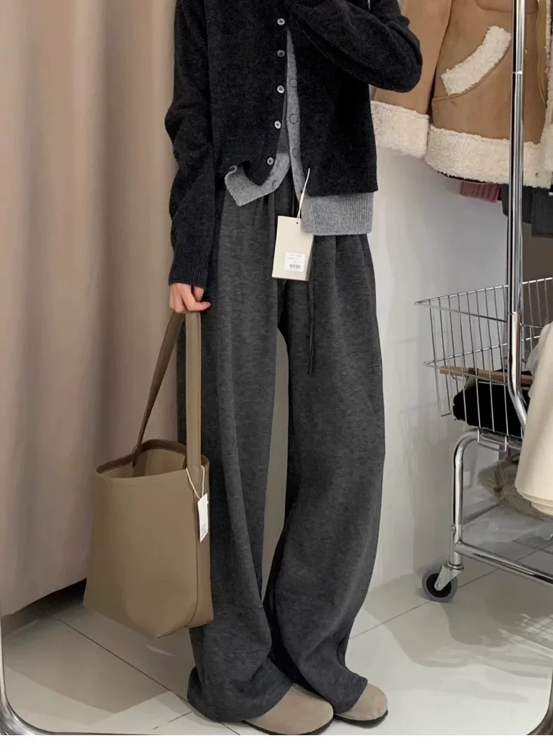 Quần gạo cao cấp màu xám đậm dành cho nữ, kiểu dáng mùa thu mới, cỡ lớn, tôn dáng, mềm mại, phù hợp với dáng người quả lê, quần ống rộng.