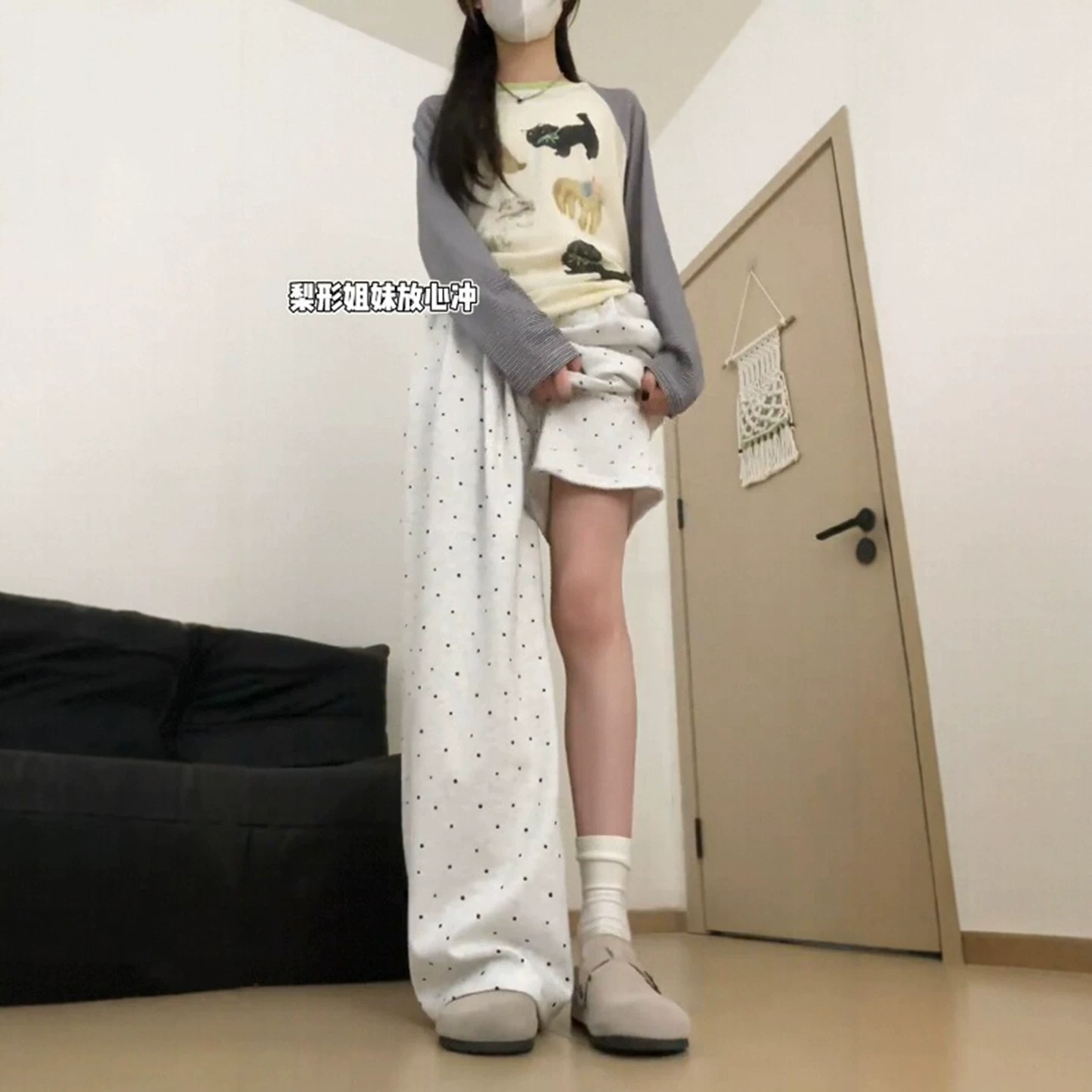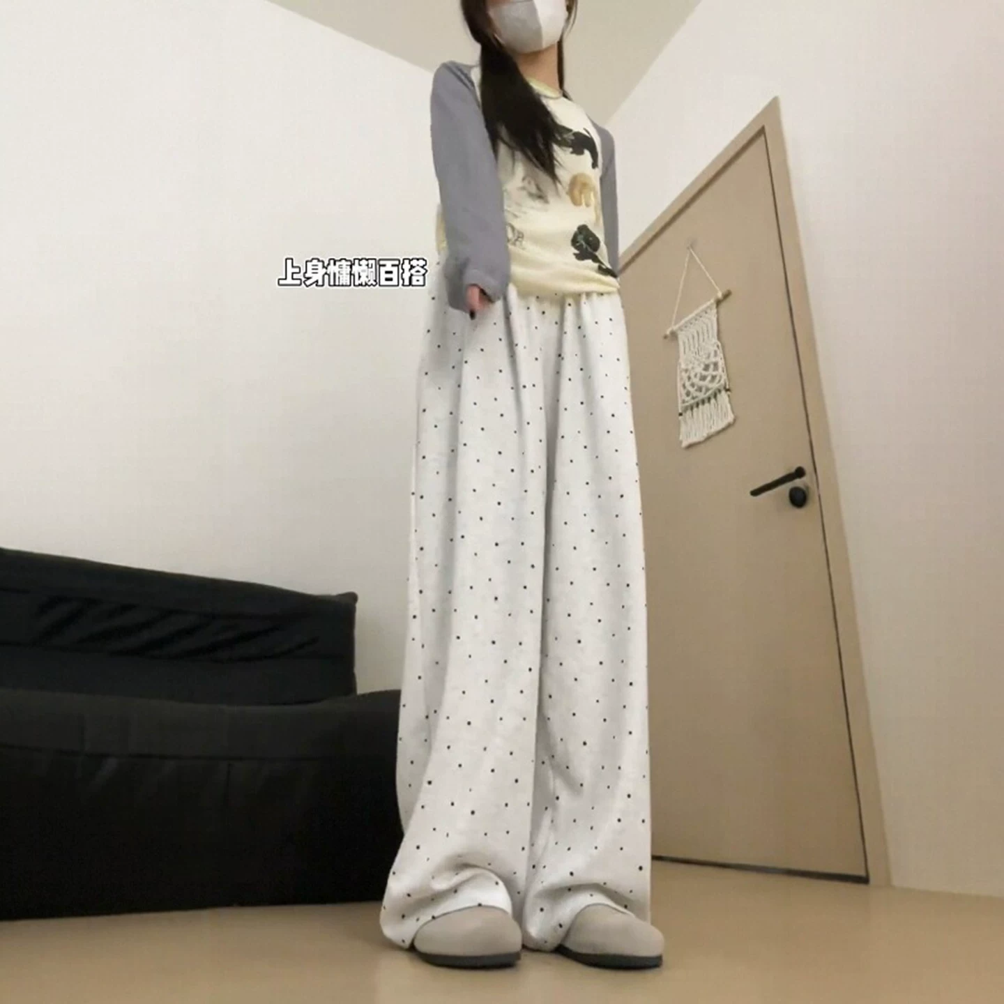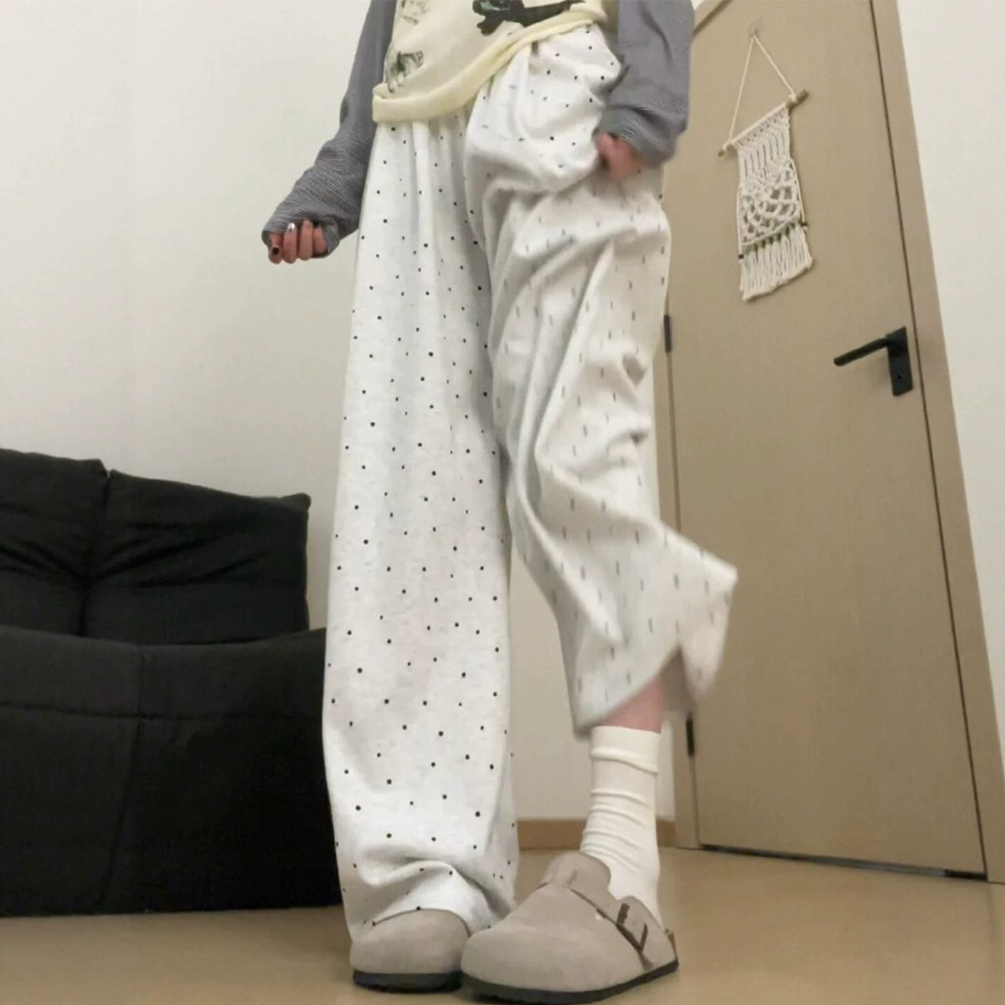 - Quần gạo chấm bi cho nữ, kiểu dáng mùa thu mới, cỡ lớn, lưng cao, dáng rộng, mềm mại, không bó sát chân, quần ống rộng thông thường, giúp giảm béo.