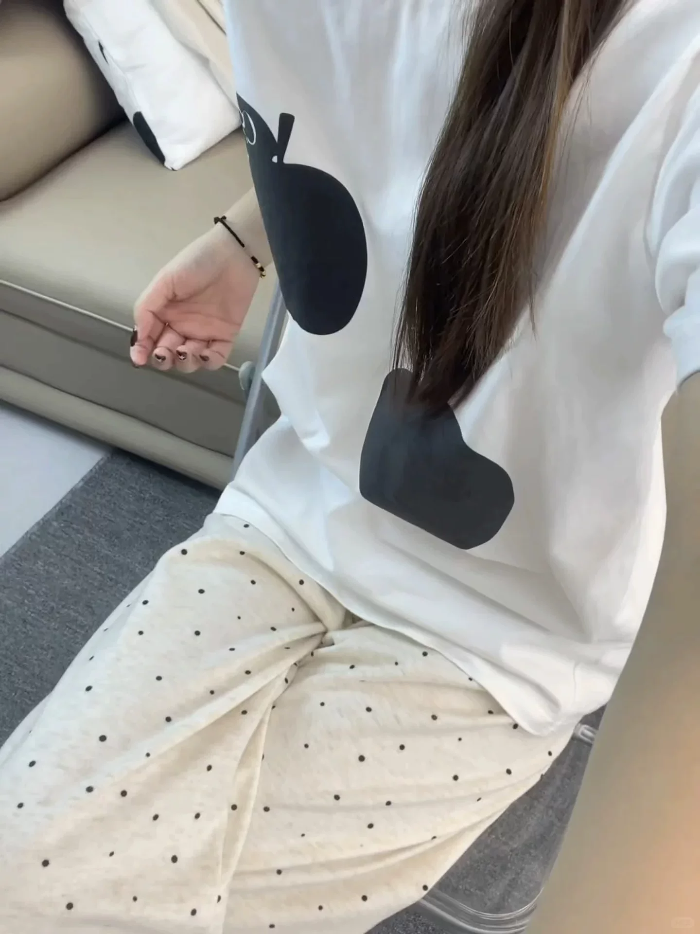 - Quần gạo chấm bi màu trắng nhạt dành cho nữ, mùa thu đông, lót lông cừu, dày dặn, cỡ lớn, lưng cao, dáng rộng, quần ống rộng, phong cách giản dị.