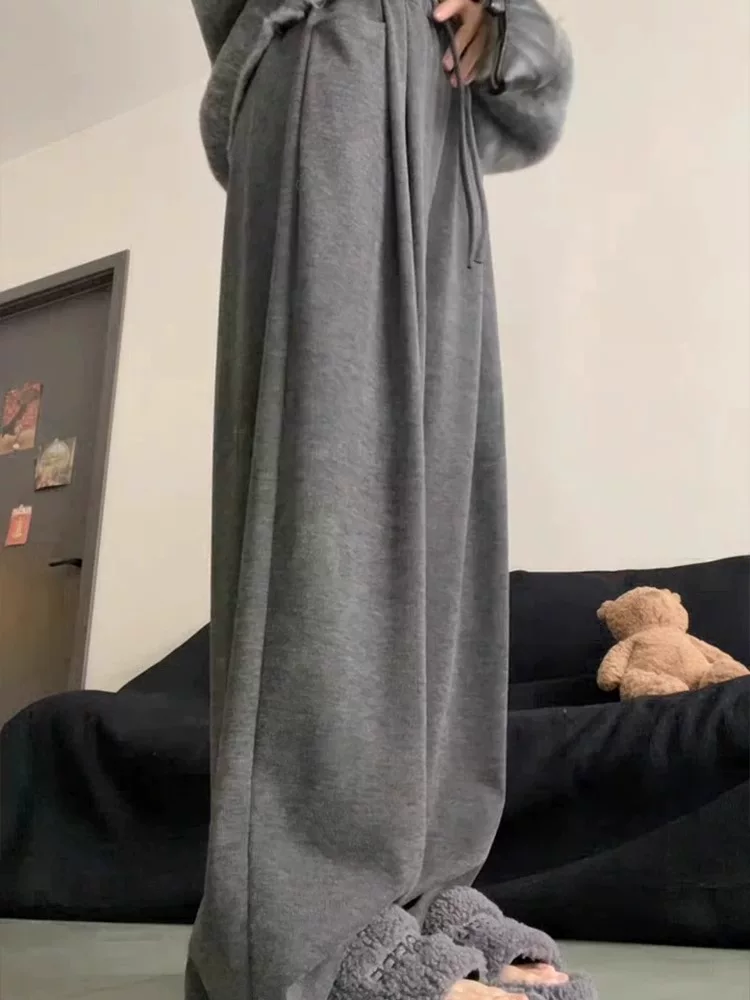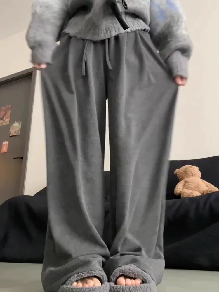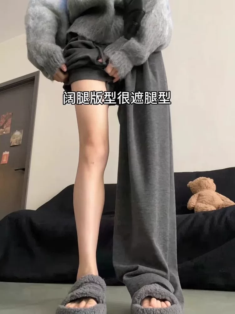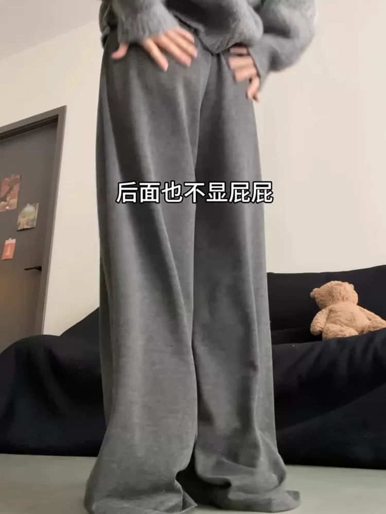 Quần gạo màu xám đậm kiểu thường dành cho nữ, kiểu mới thu đông 2025, size lớn, cạp cao, che hông, chất liệu mềm mại, dáng rộng tôn dáng.