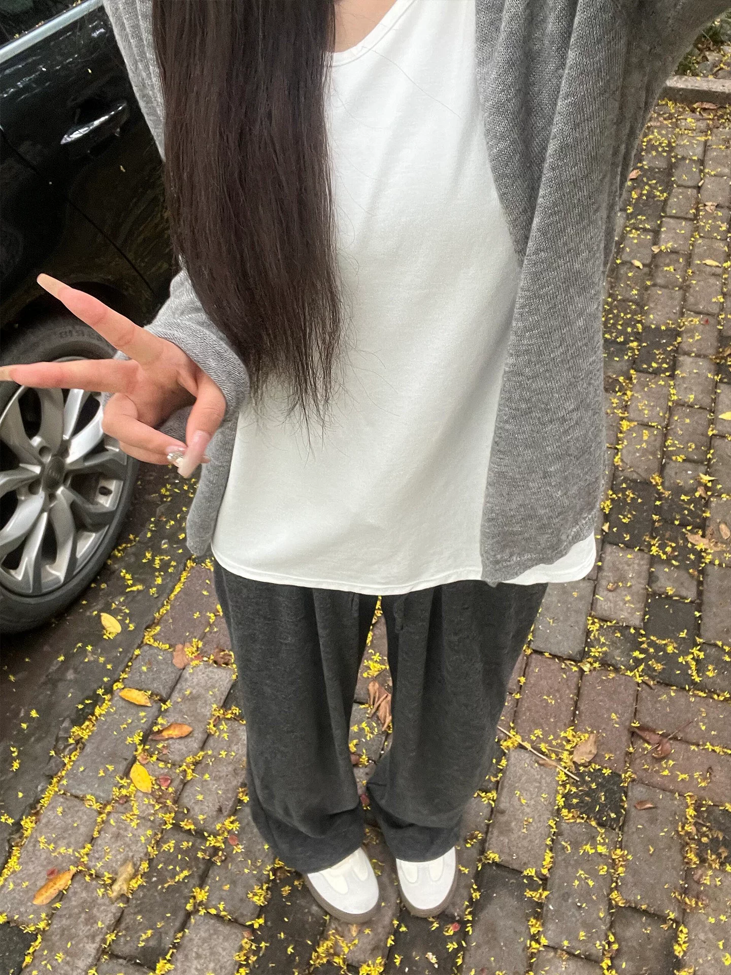 - Quần gạo màu xám kiểu lười biếng dành cho nữ, bộ sưu tập mùa thu mới, cỡ lớn, lưng cao, dáng rộng, xếp nếp, giảm béo, quần ống rộng nhỏ nhắn.