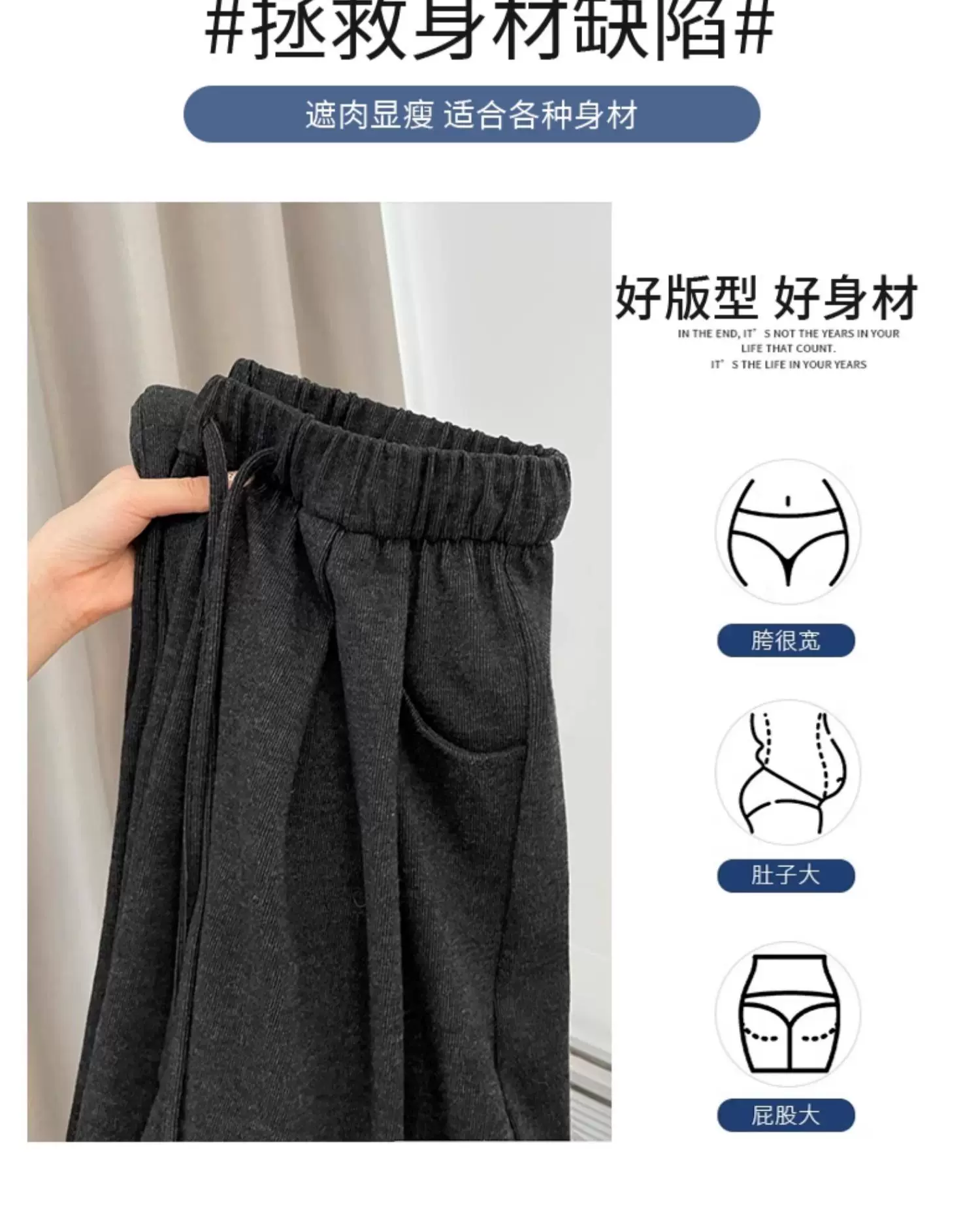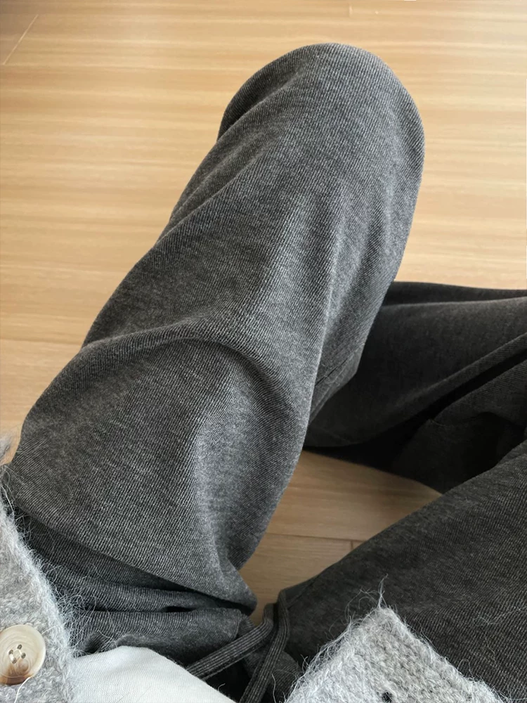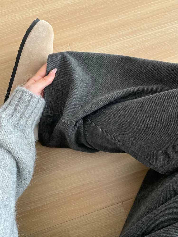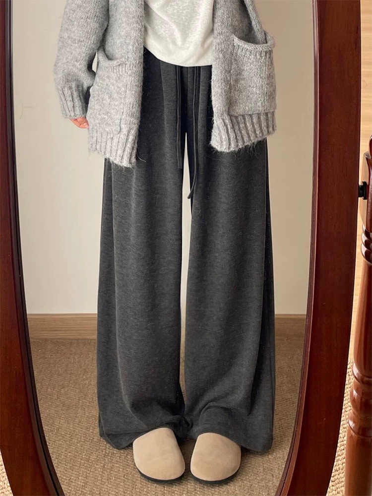 Quần gạo nếp thoải mái dành cho nữ, mùa thu đông, lót lông cừu, dày dặn, cỡ lớn, lưng cao, dáng rộng, mềm mại, tôn dáng, quần ống rộng.