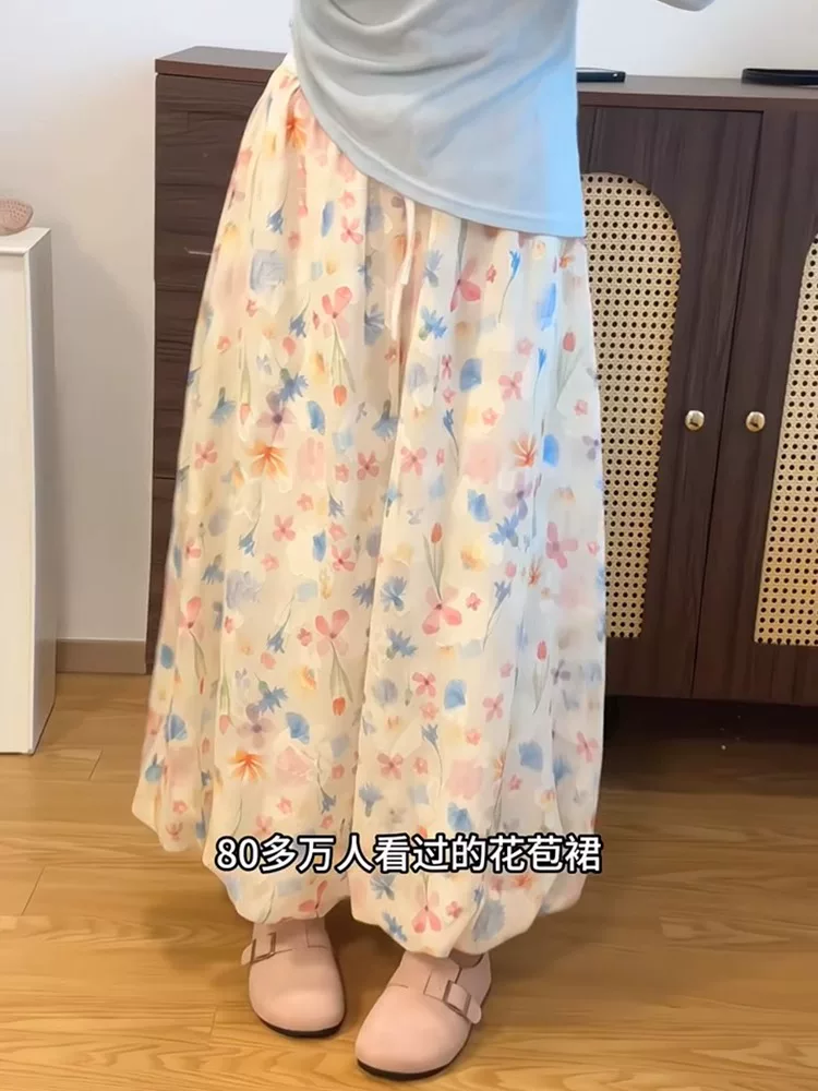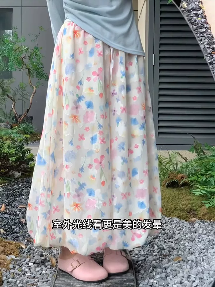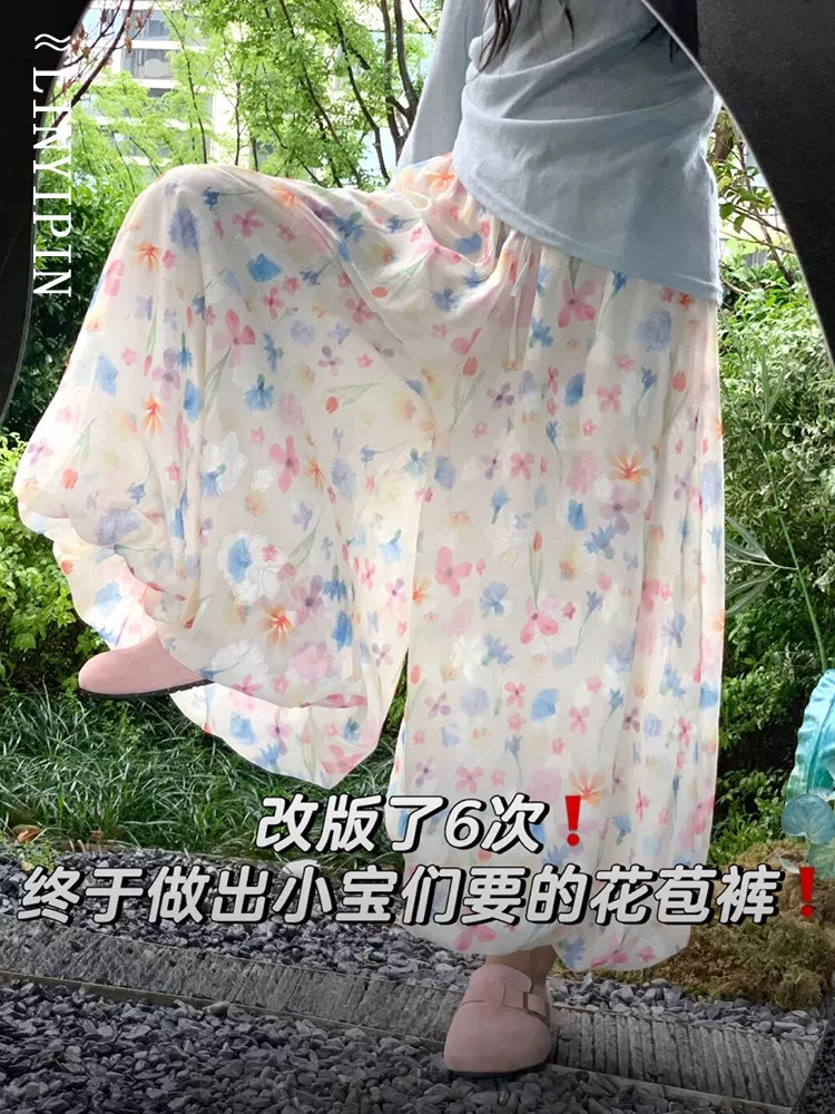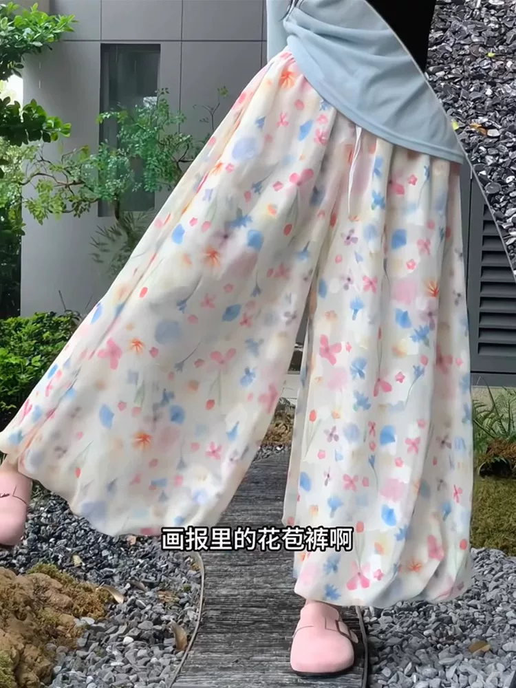 Quần hoa nhiều màu sắc dành cho nữ, kiểu dáng mỏng mùa hè, cỡ lớn, lưng cao, dáng suôn, tôn dáng, họa tiết hoa, quần phồng, quần ống rộng mát mẻ.