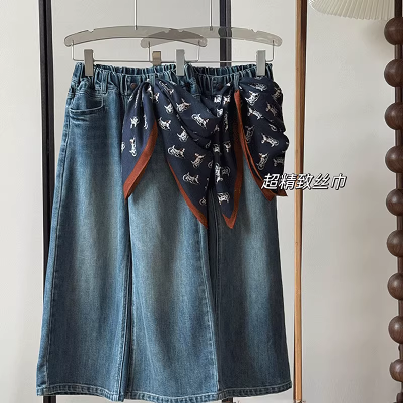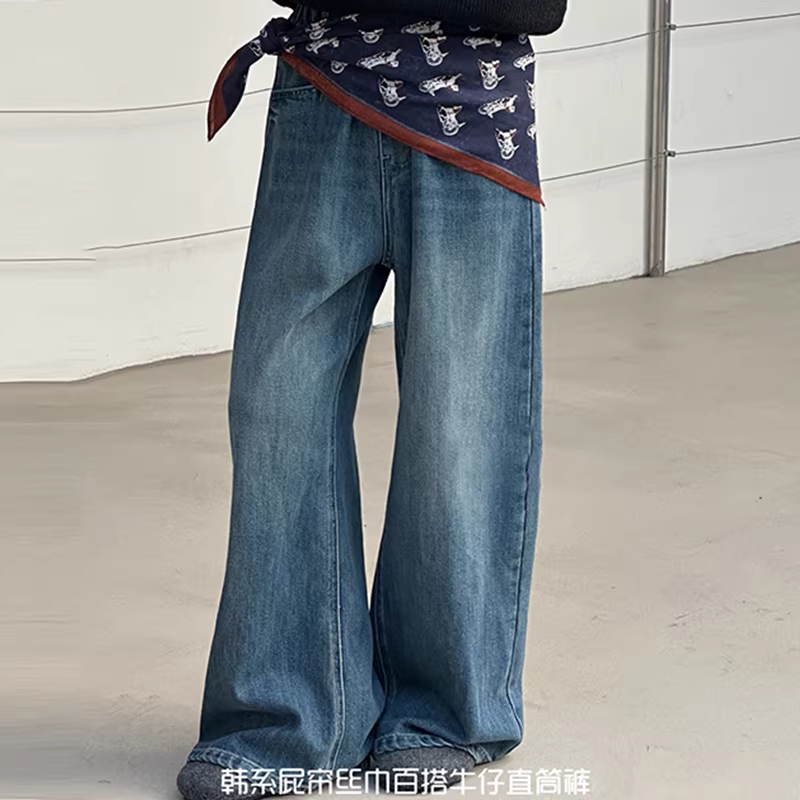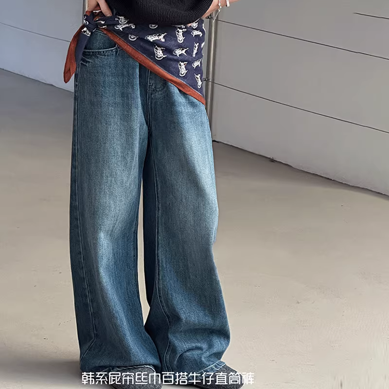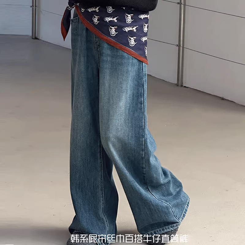 - Quần jean bé gái 25 mùa thu kiểu mới quần ống rộng thời trang trẻ em dành cho trẻ lớn hơn quần ống đứng hẹp kiểu dáng đơn giản