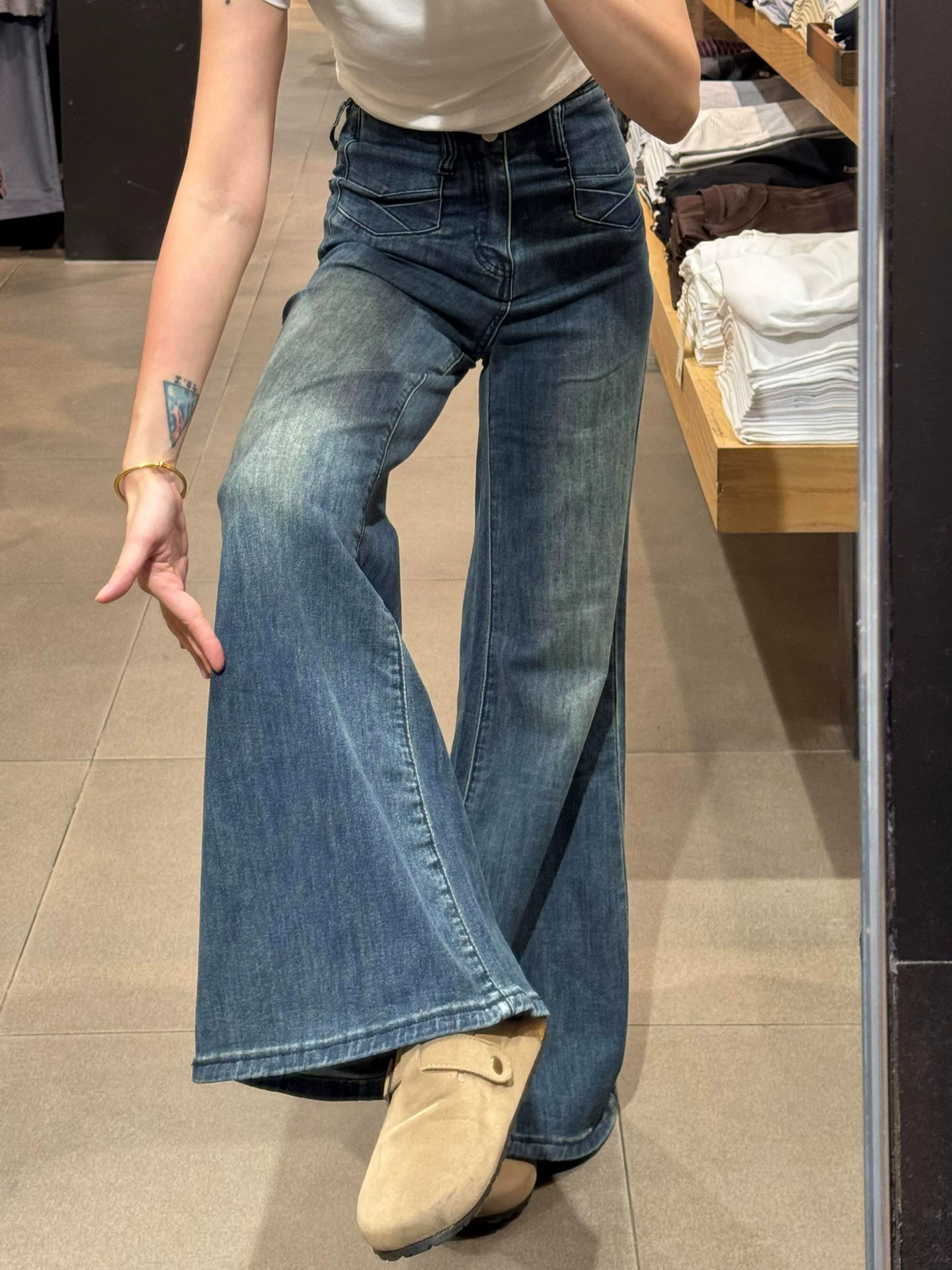 - Quần jean bootcut kiểu Mỹ dành cho nữ, mùa thu, ống rộng, tôn dáng, size lớn, cạp cao, co giãn, quần loe tôn dáng