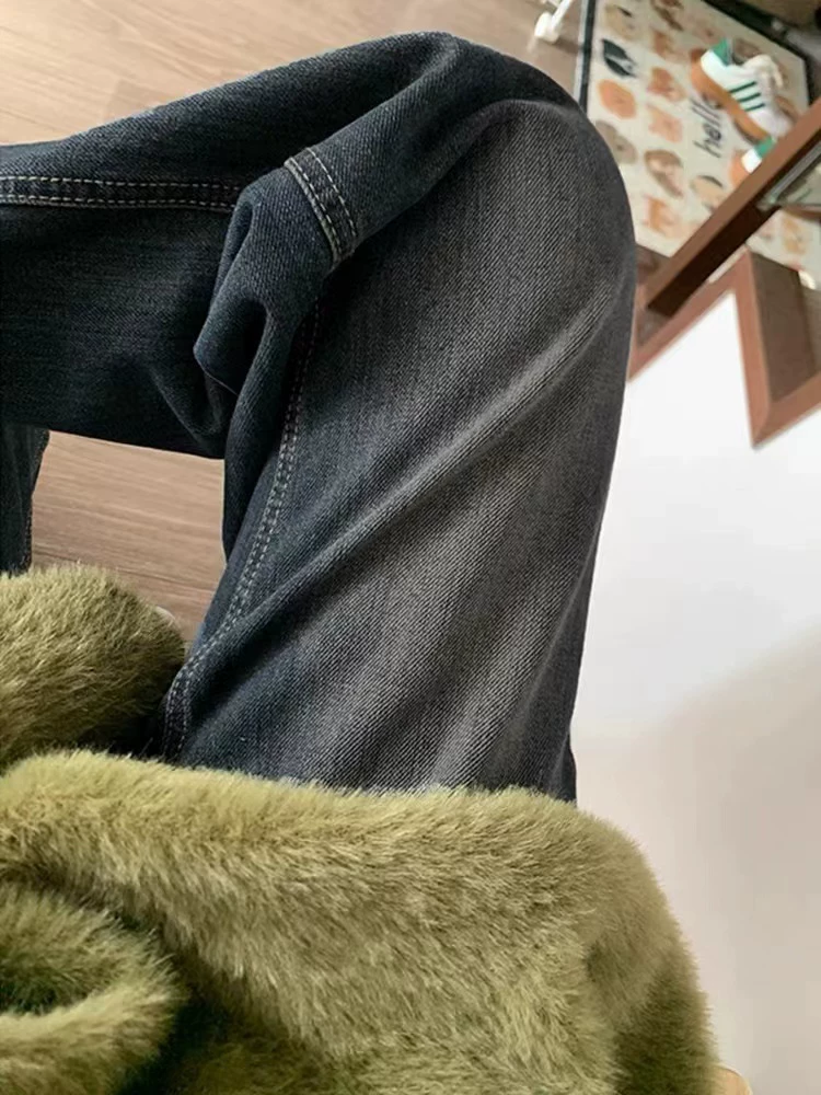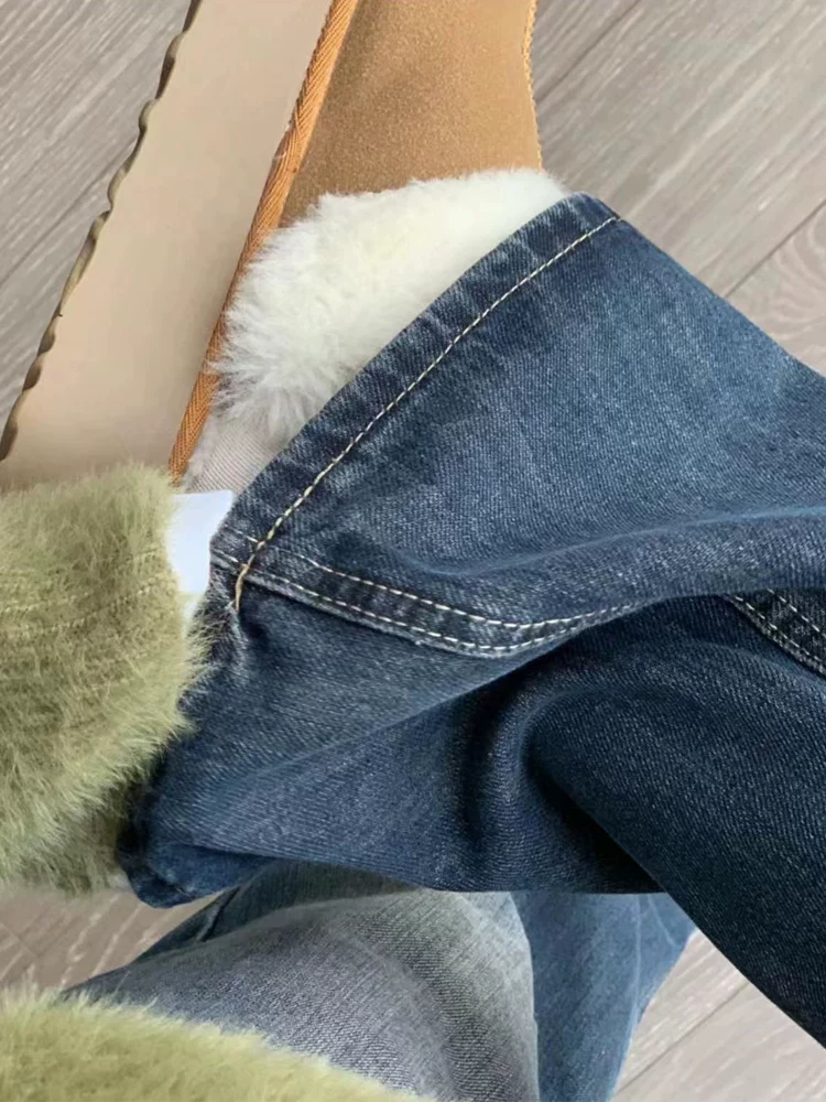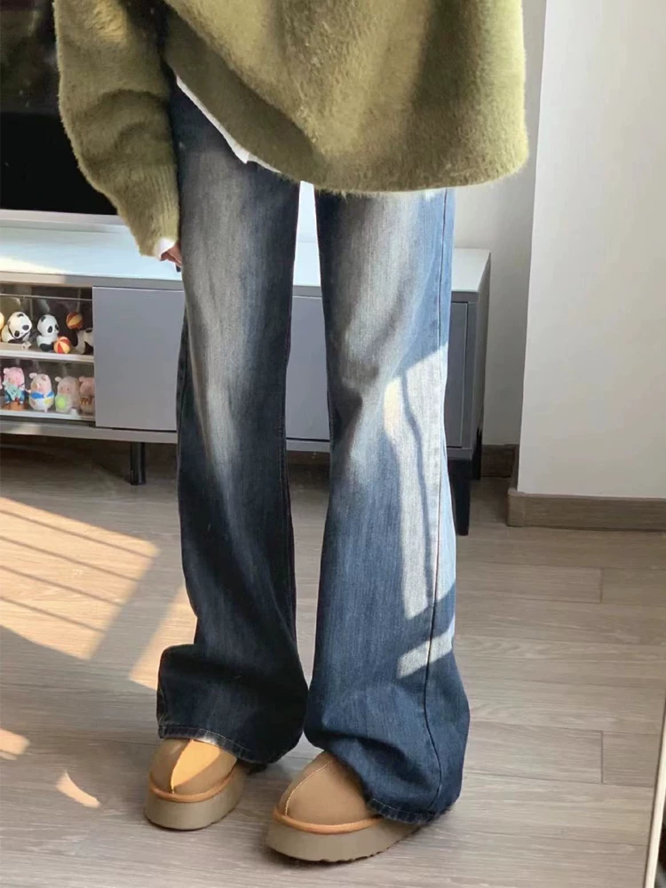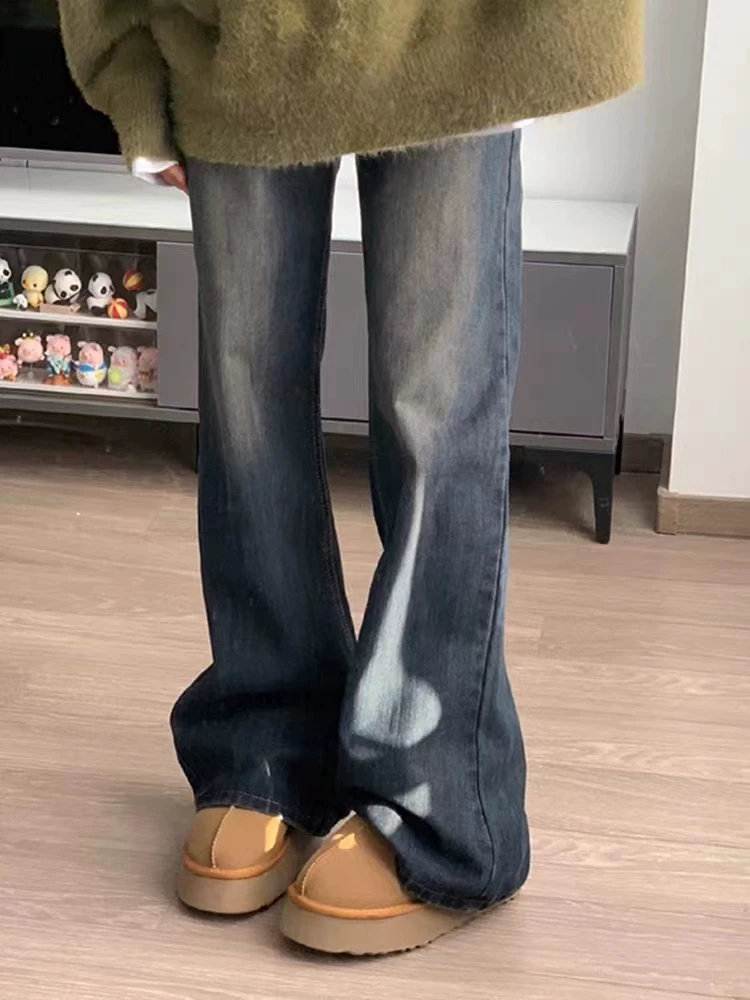 Quần jean bootcut màu xanh cổ điển dành cho nữ, cỡ lớn mùa đông, quần dài rộng ống rộng, cạp cao, dáng rộng, tôn dáng, dài chấm đất, thích hợp cho đầu xuân