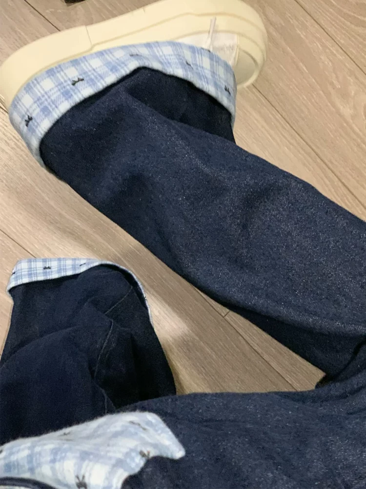 Quần jean chắp vá kiểu Mỹ dành cho nữ, mùa thu đông, cỡ lớn, mùa xuân, lưng cao, dáng rộng, giảm béo, quần ống thẳng, quần ống rộng