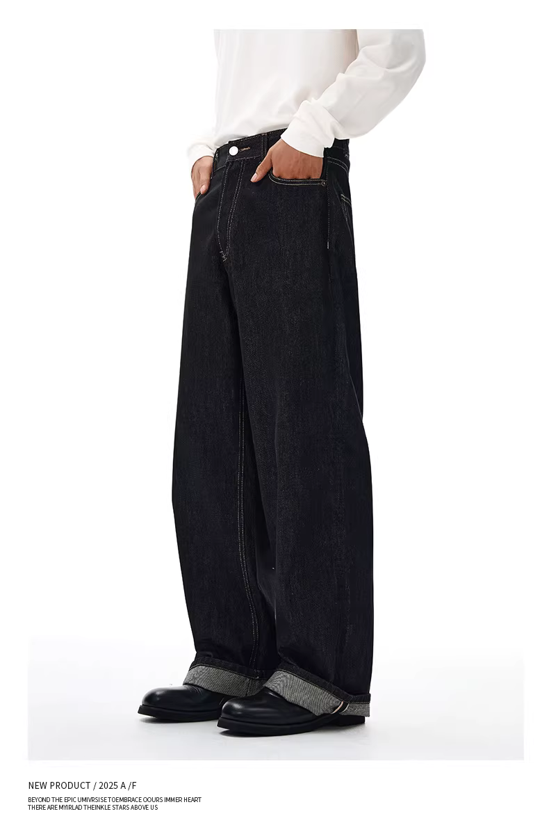 Quần jean cổ điển kiểu Mỹ OMZM dành cho nam, quần thẳng màu trơn, kiểu dáng đơn giản, màu gốc, giặt sạch mùa đông, quần kiểu dáng thời thượng thương hiệu scimitar