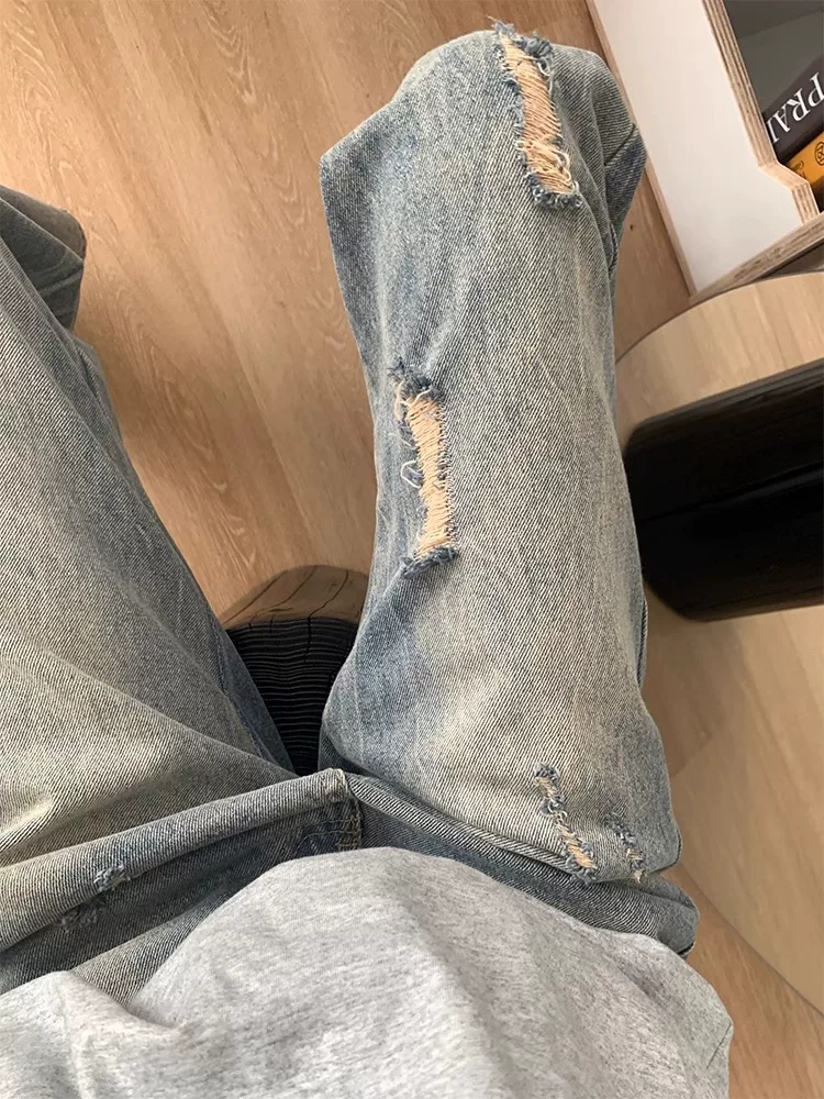 - Quần jean cổ điển màu sáng dành cho nữ, phong cách mới đầu thu, cỡ lớn, lưng cao, dáng rộng, tôn dáng, quần ống rộng rách.