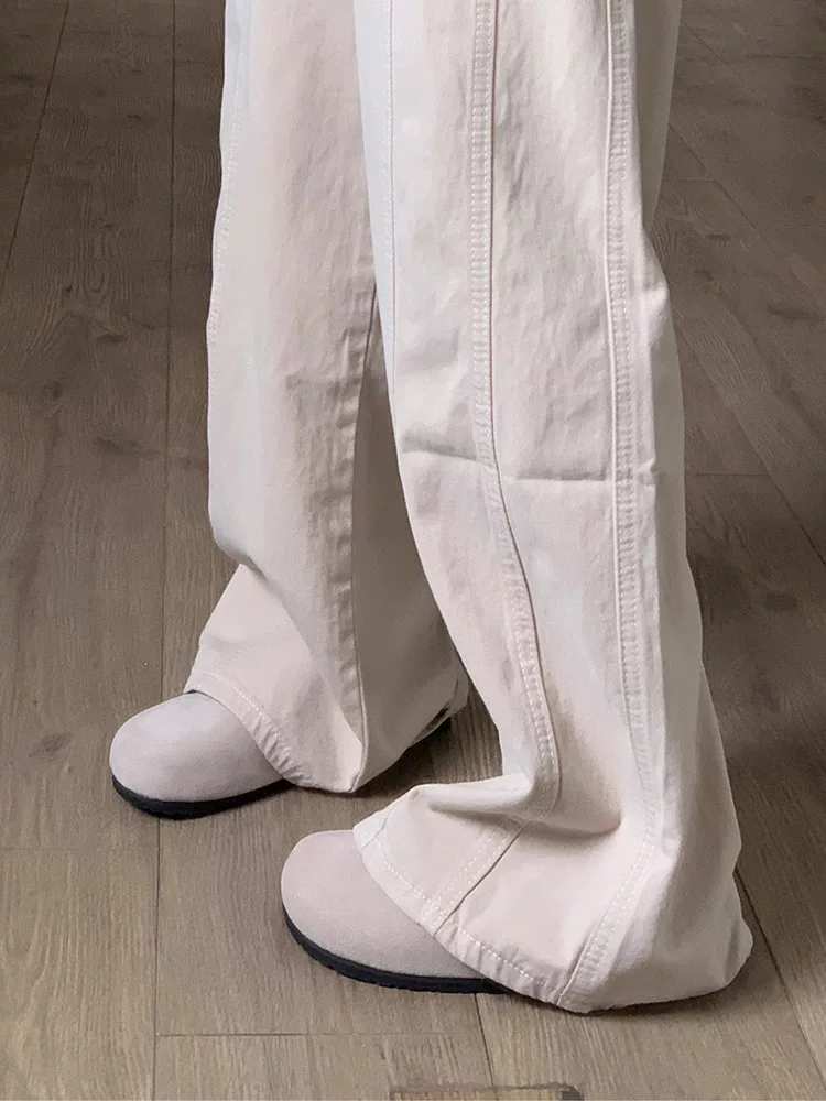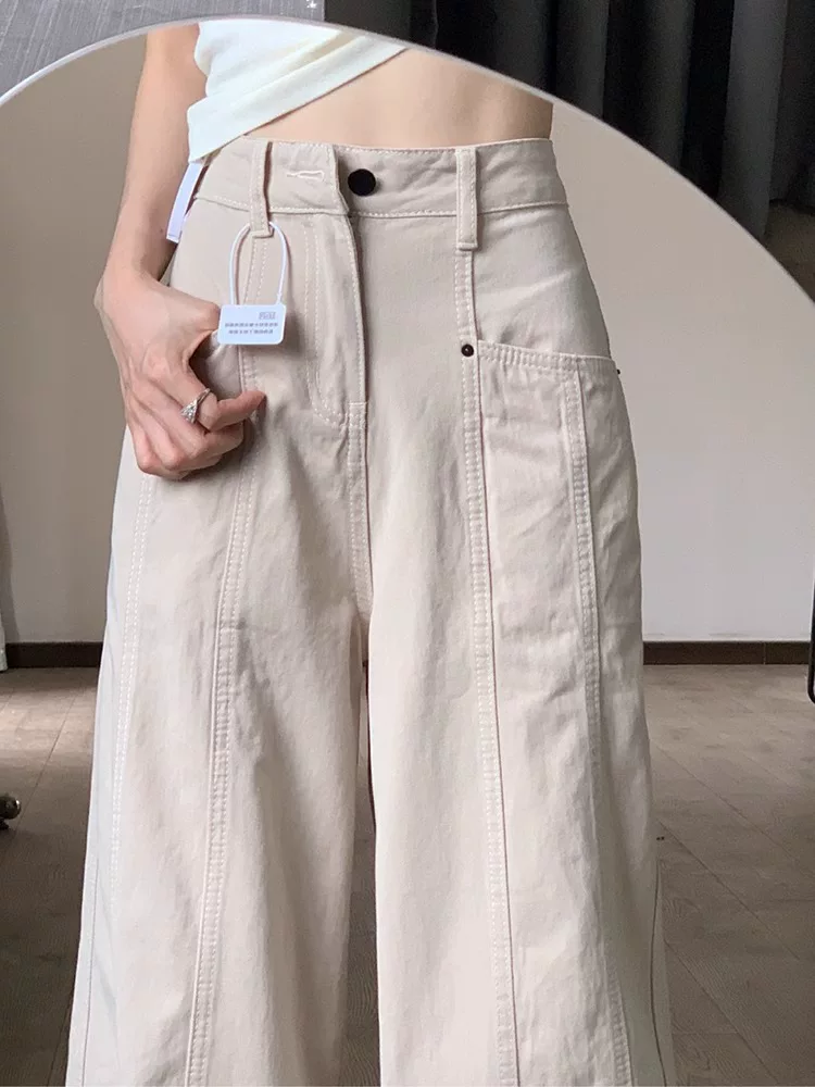 Quần jean công sở màu mơ dành cho nữ, mùa xuân hè, cỡ lớn, lưng cao, dáng rộng, thon gọn, dáng quả lê, quần ống rộng, dài đến sàn