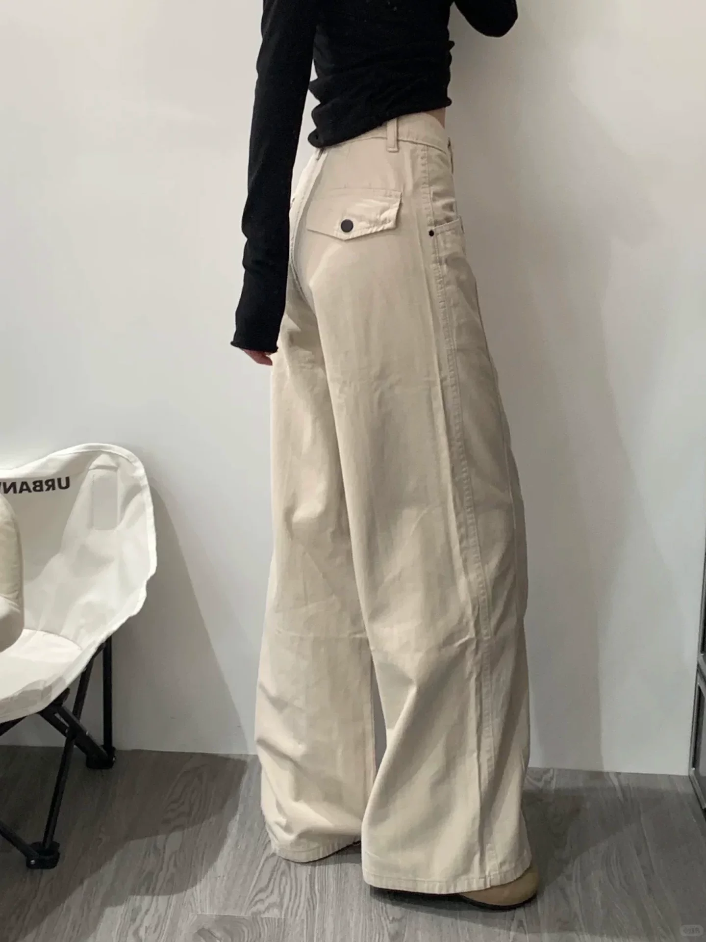 - Quần jean công sở màu mơ dành cho nữ, phong cách đầu thu, cỡ lớn, lưng cao, dáng rộng, che hông, giảm béo, dáng quả lê, quần ống rộng