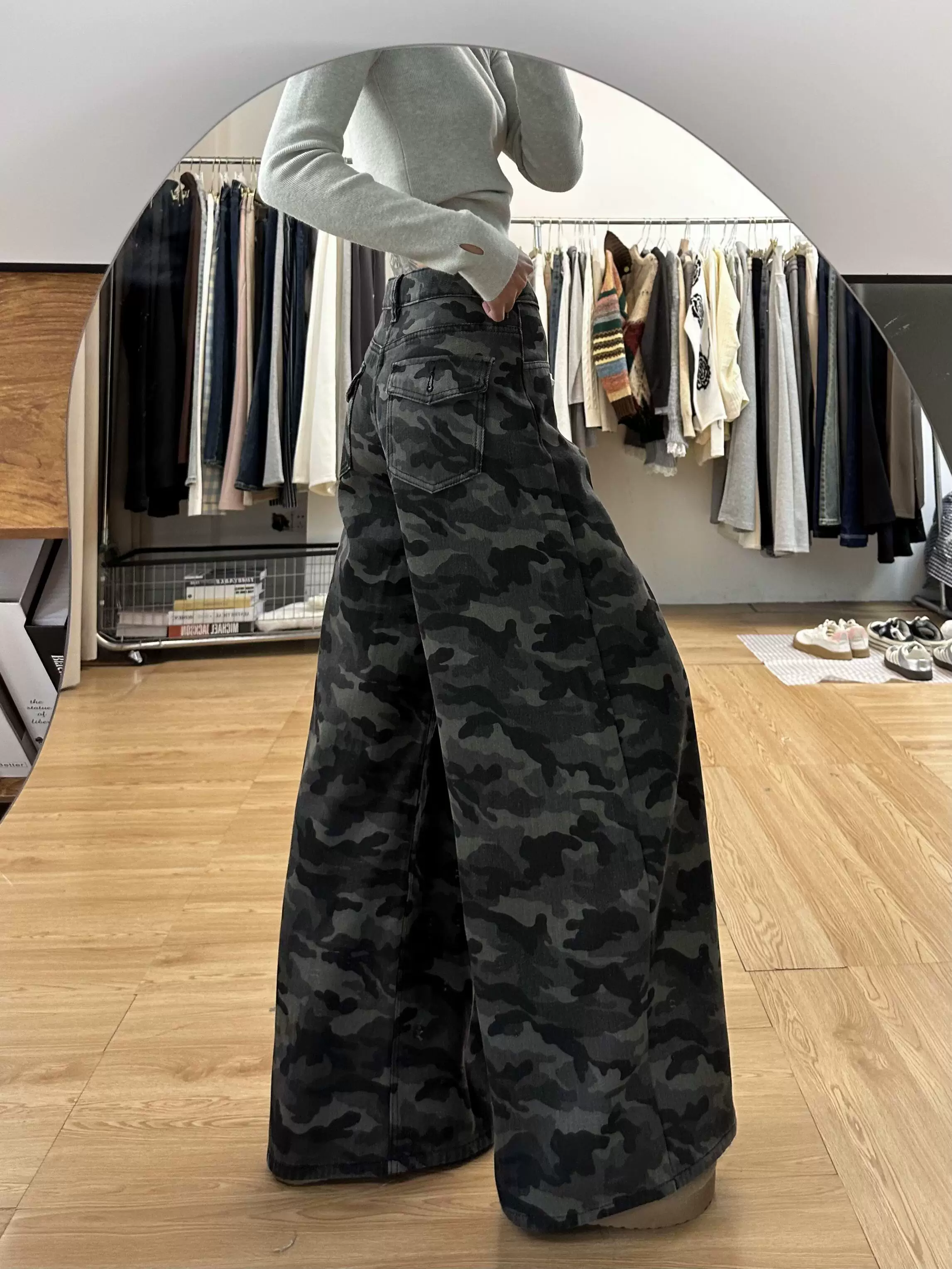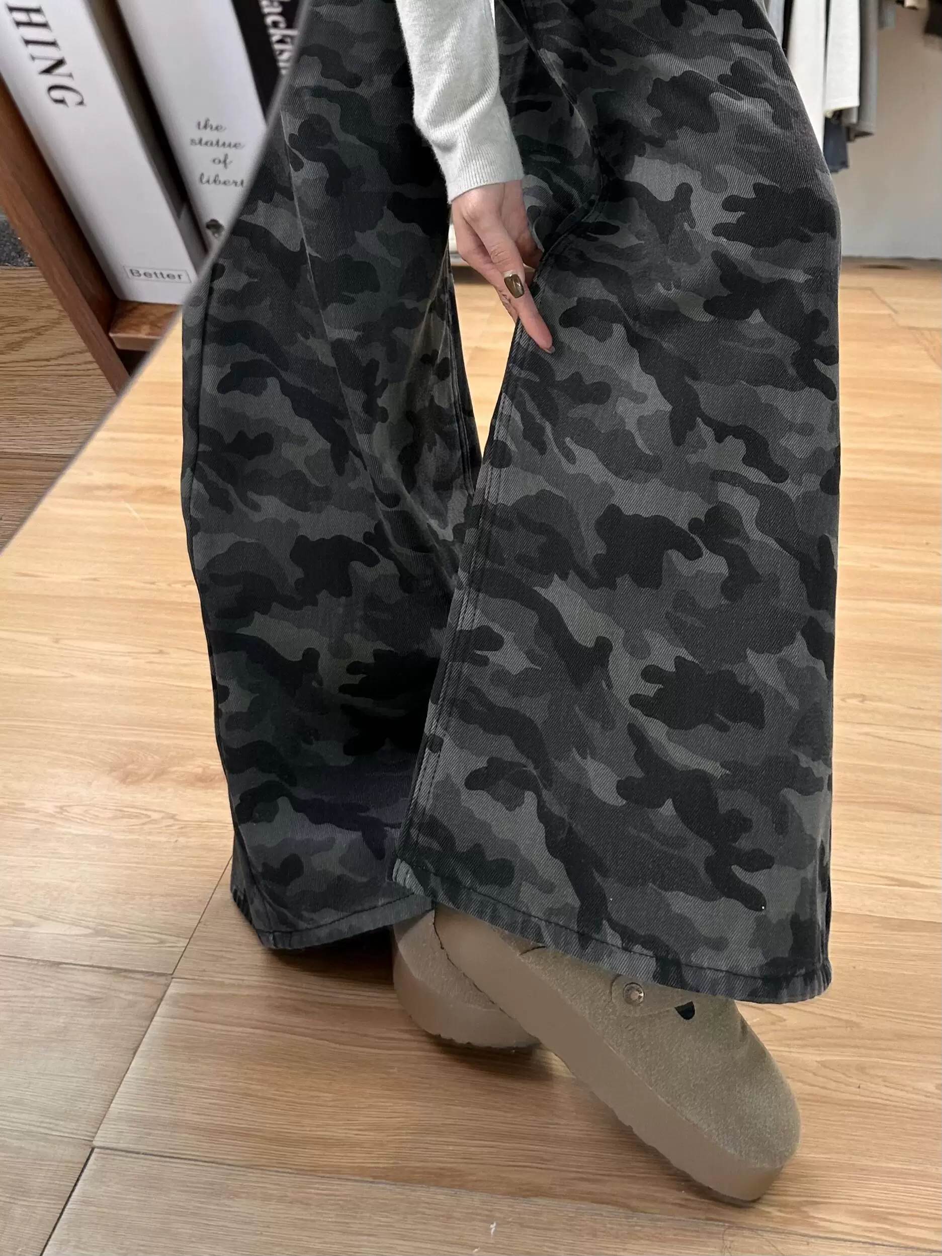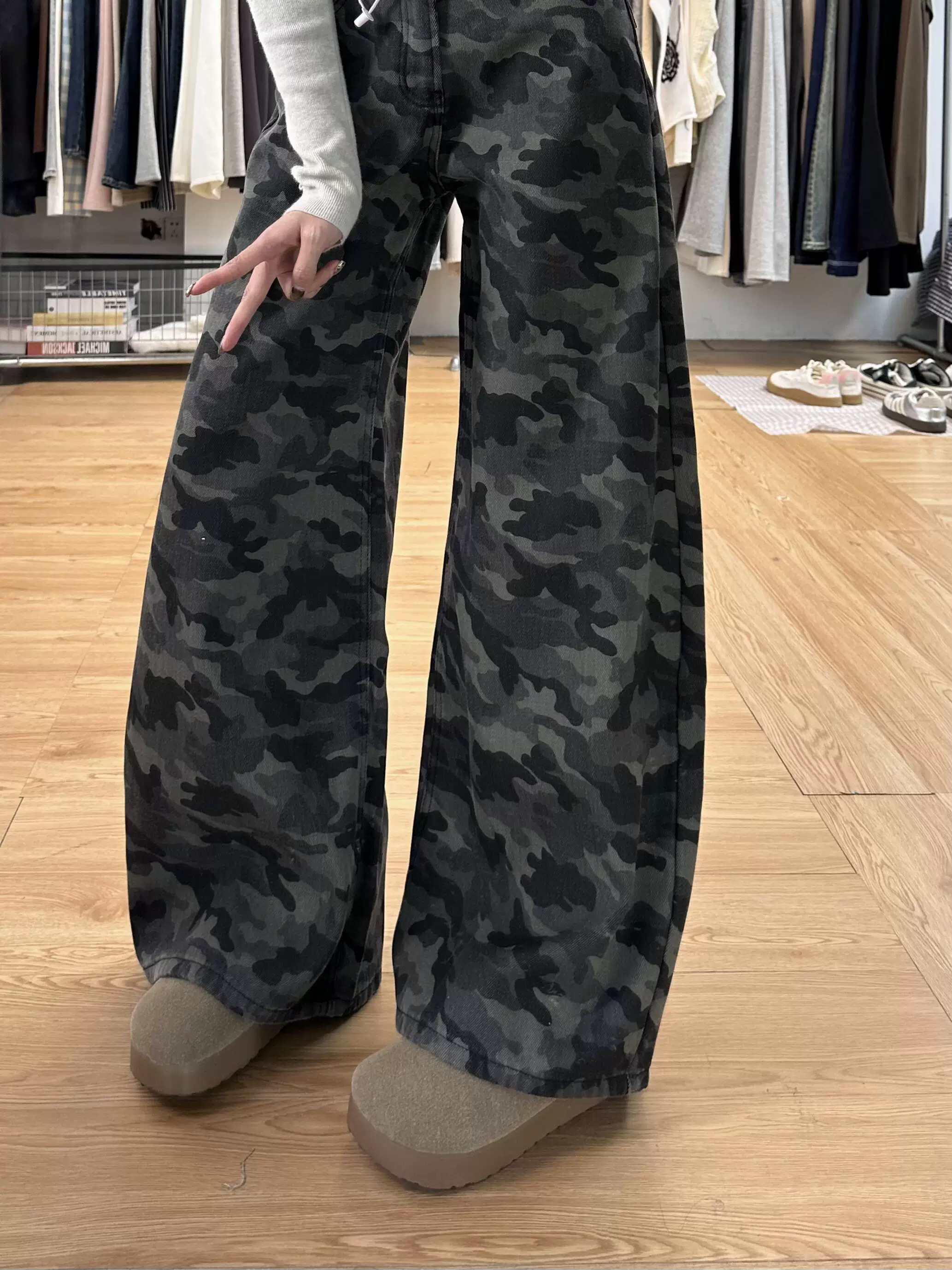 Quần jean công sở ngụy trang cổ điển của Mỹ dành cho nữ, phong cách mùa hè, cỡ lớn, lưng cao, dáng rộng, giảm béo, quần ống rộng.
