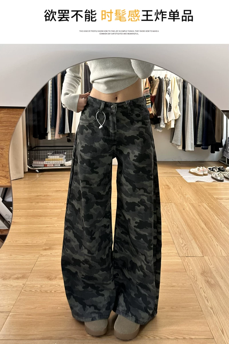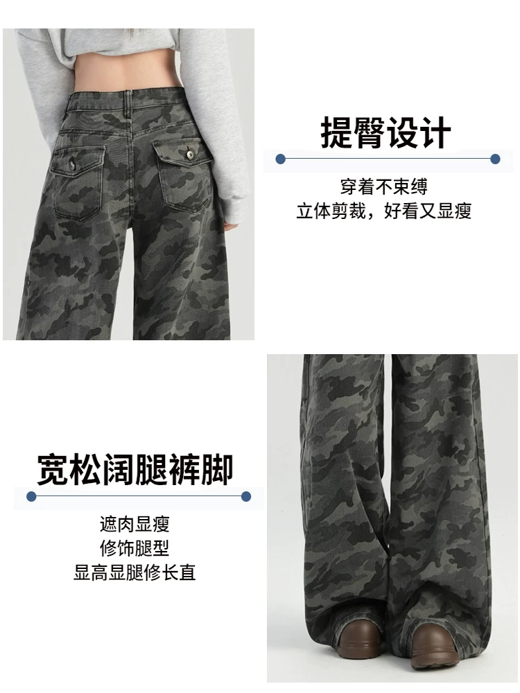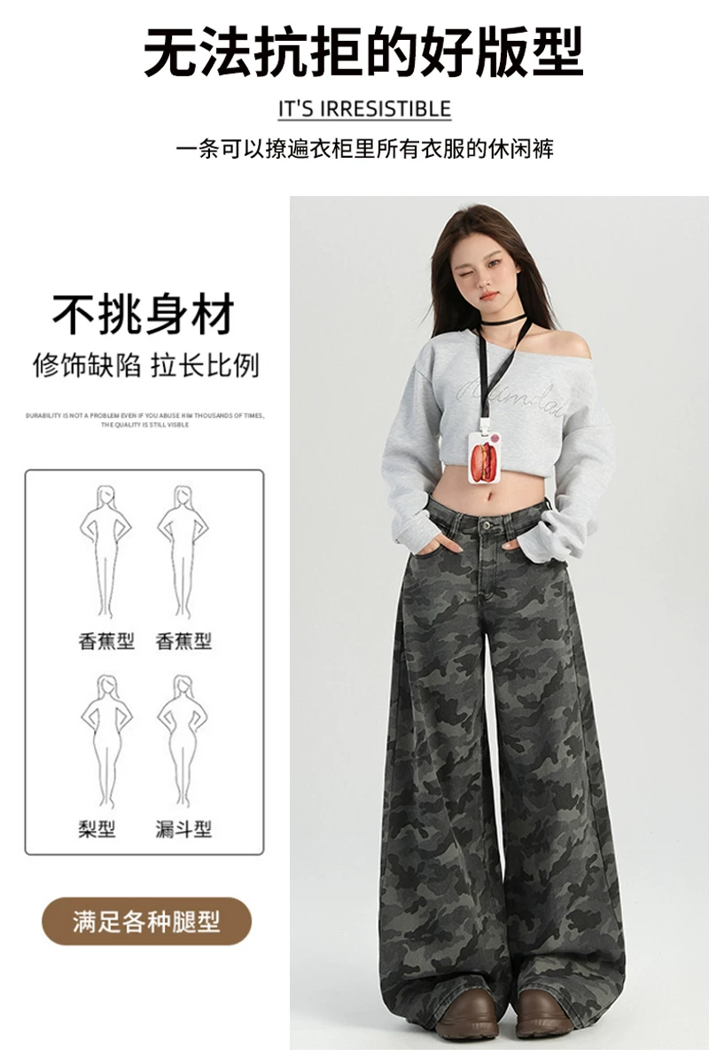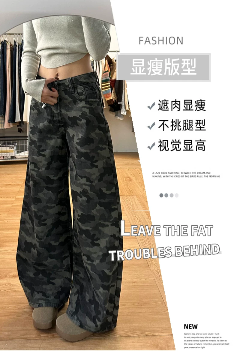 - Quần jean công sở ngụy trang cổ điển của Mỹ dành cho nữ, phong cách mùa hè, cỡ lớn, lưng cao, dáng rộng, giảm béo, quần ống rộng.