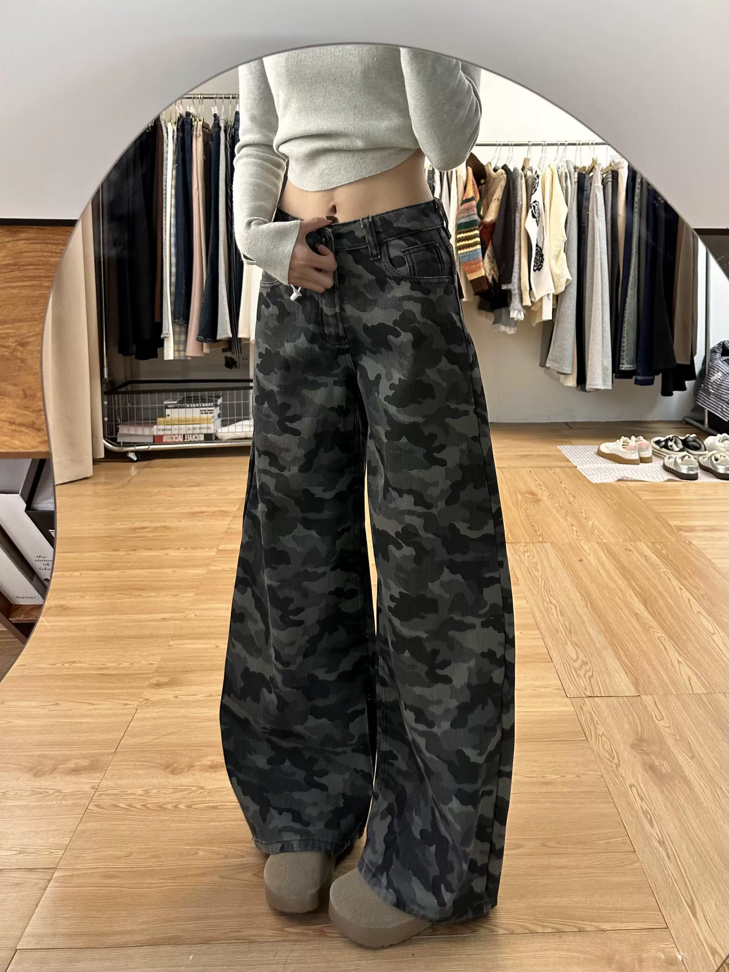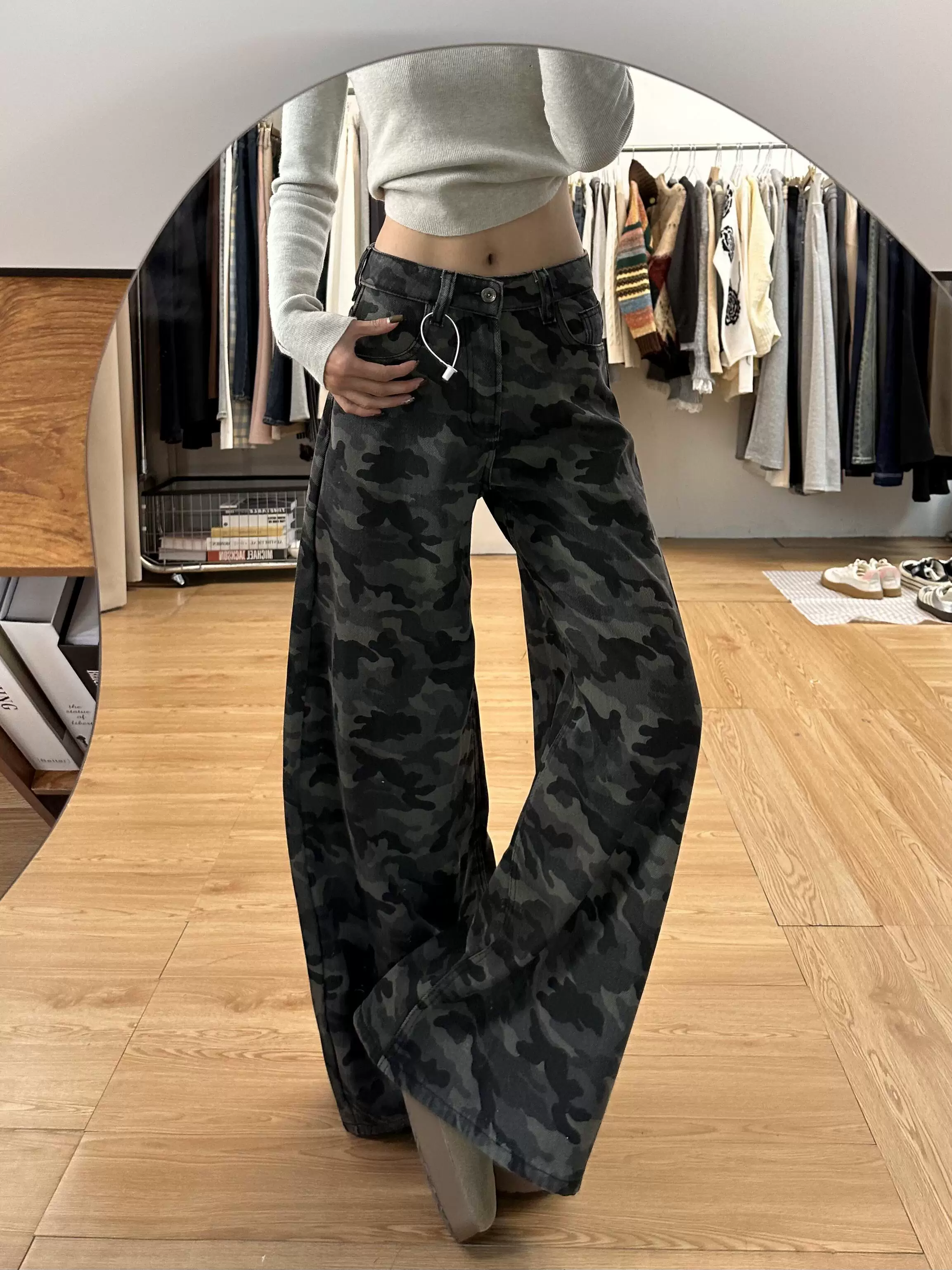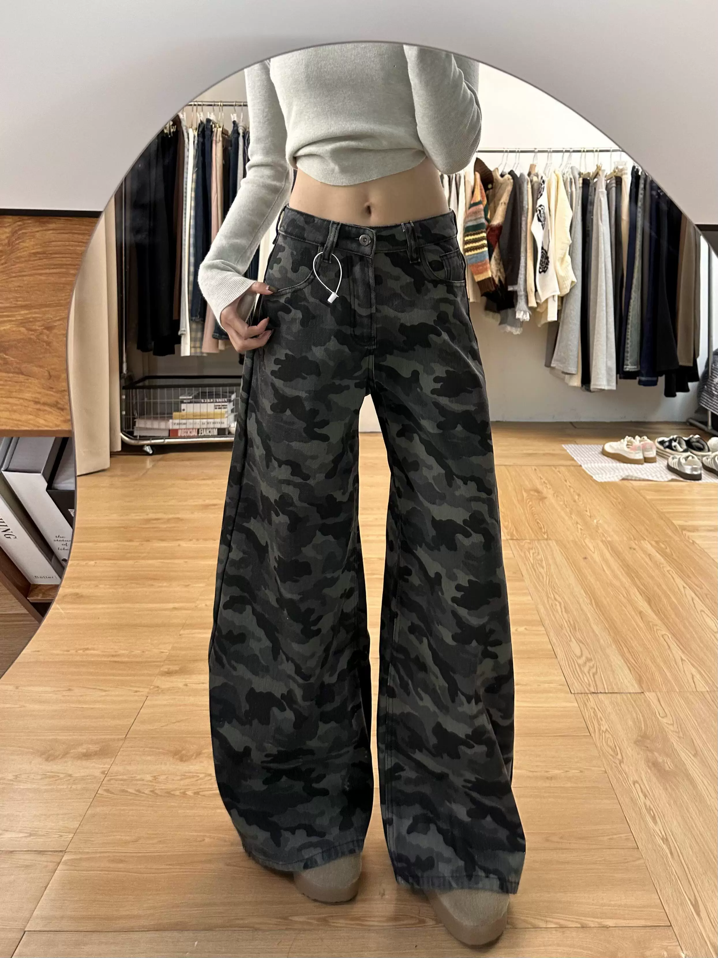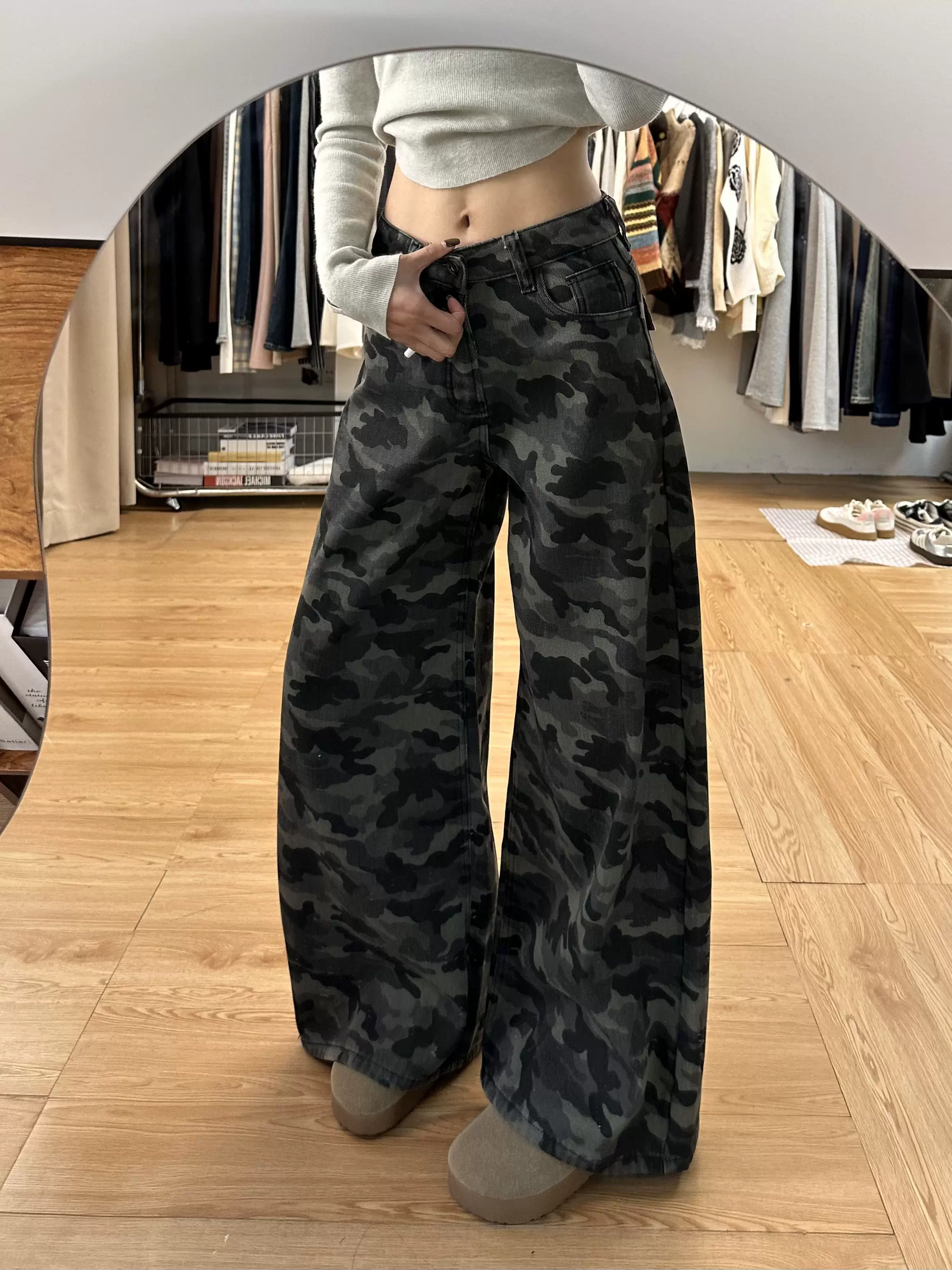 - Quần jean công sở ngụy trang cổ điển của Mỹ dành cho nữ, phong cách mùa hè, cỡ lớn, lưng cao, dáng rộng, giảm béo, quần ống rộng.